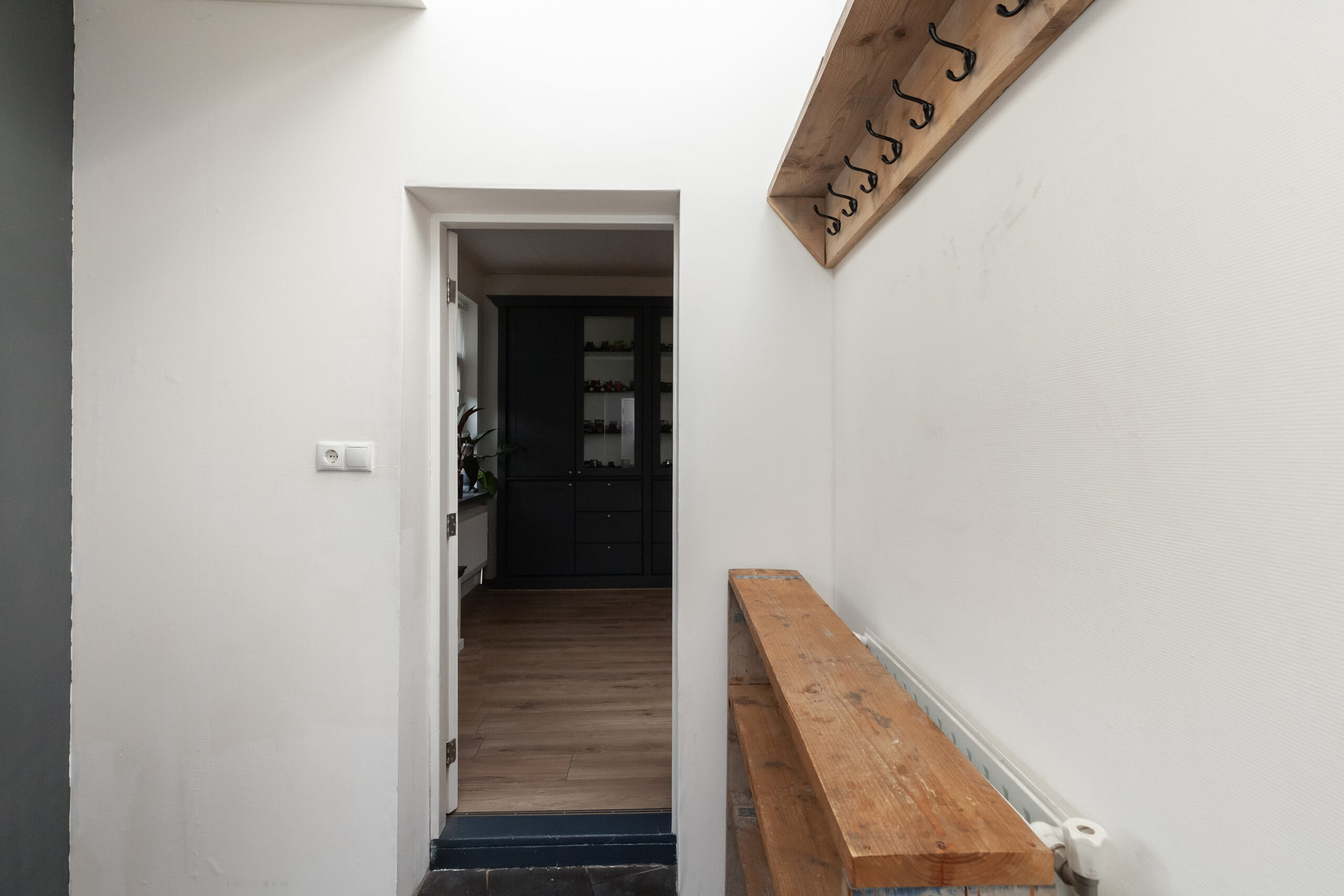 Al snel zult u en uw bekende gasten achterom komen. Dan stapt u binnen in dit portaal. Er is alle ruimte voor een kapstok en een schoenenkast. Verder heeft u de toiletruimte en de toegang tot de woonkamer.