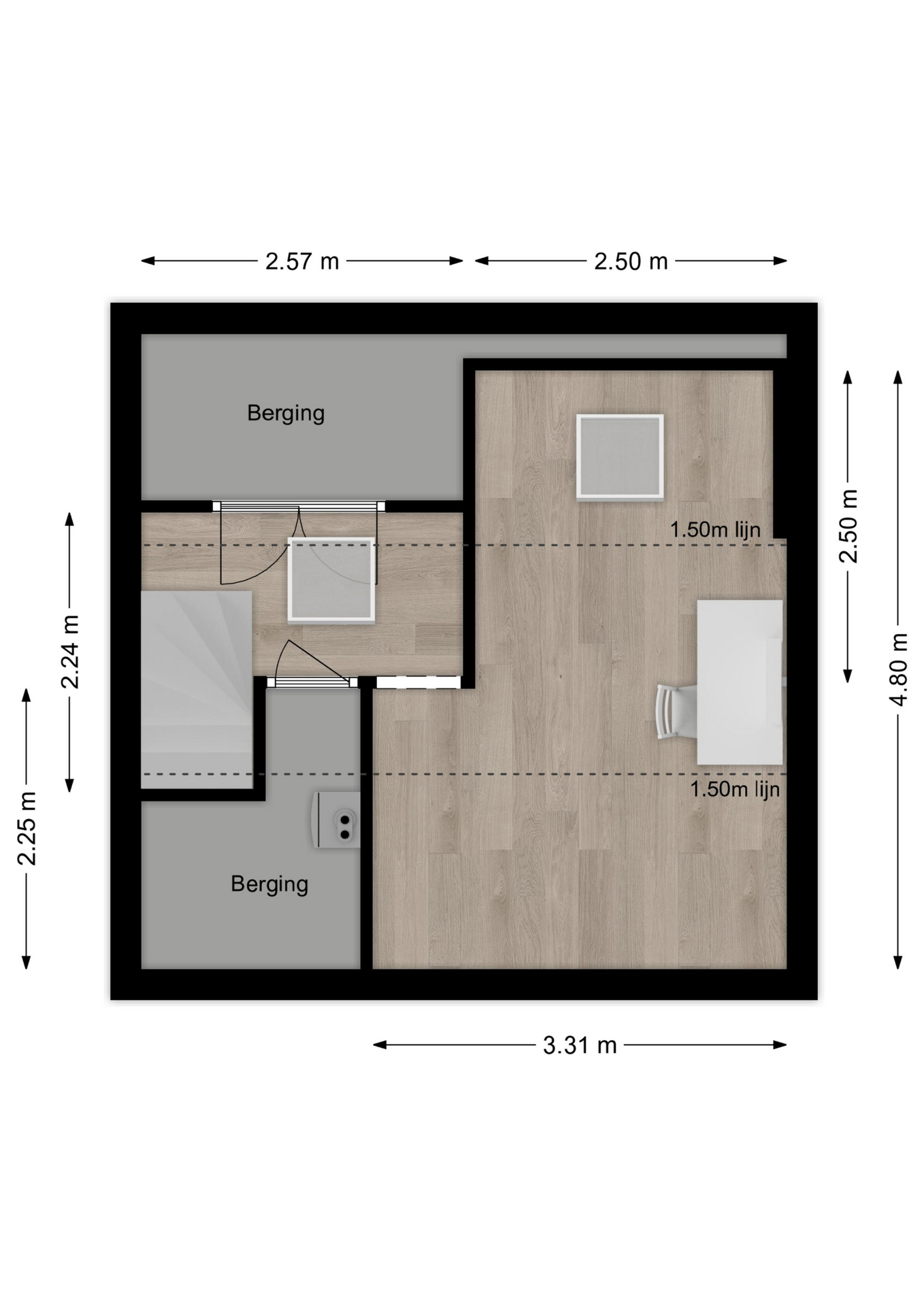 Maatvoering: Circa 4.80 x 3.31/2.50m