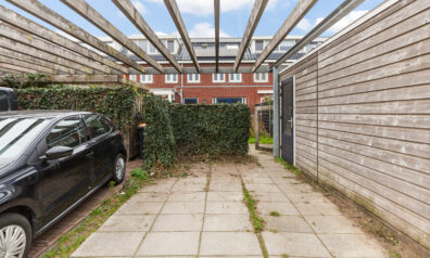 Komt u via de voorzijde, dan gaat u via de voortuin naar de voordeur. Maar doordat u een parkeerplaats aan de achterzijde heeft, zult u al snel achterom komen.