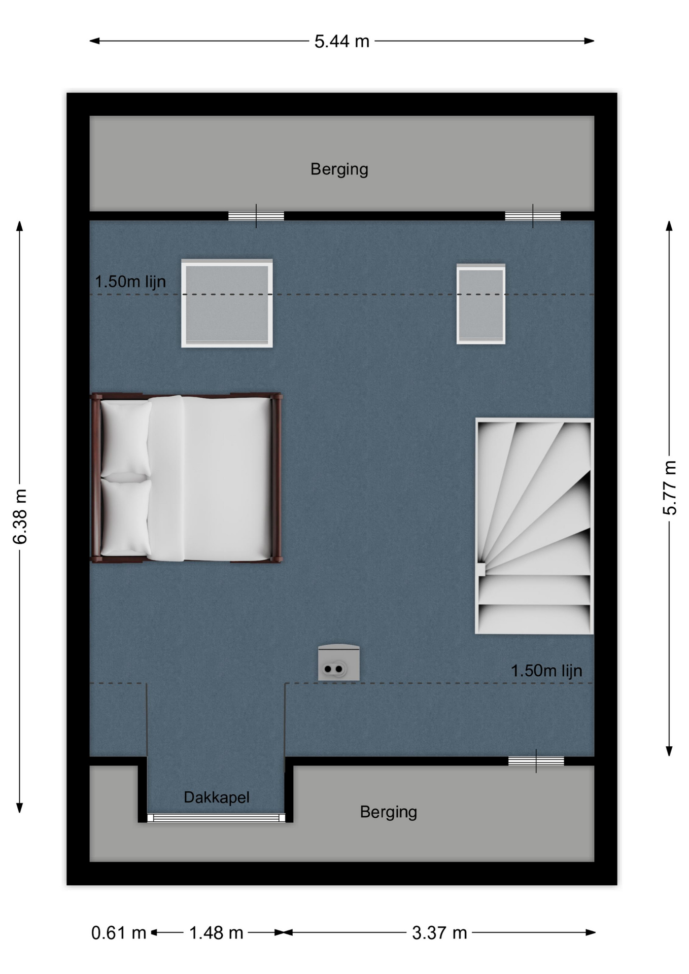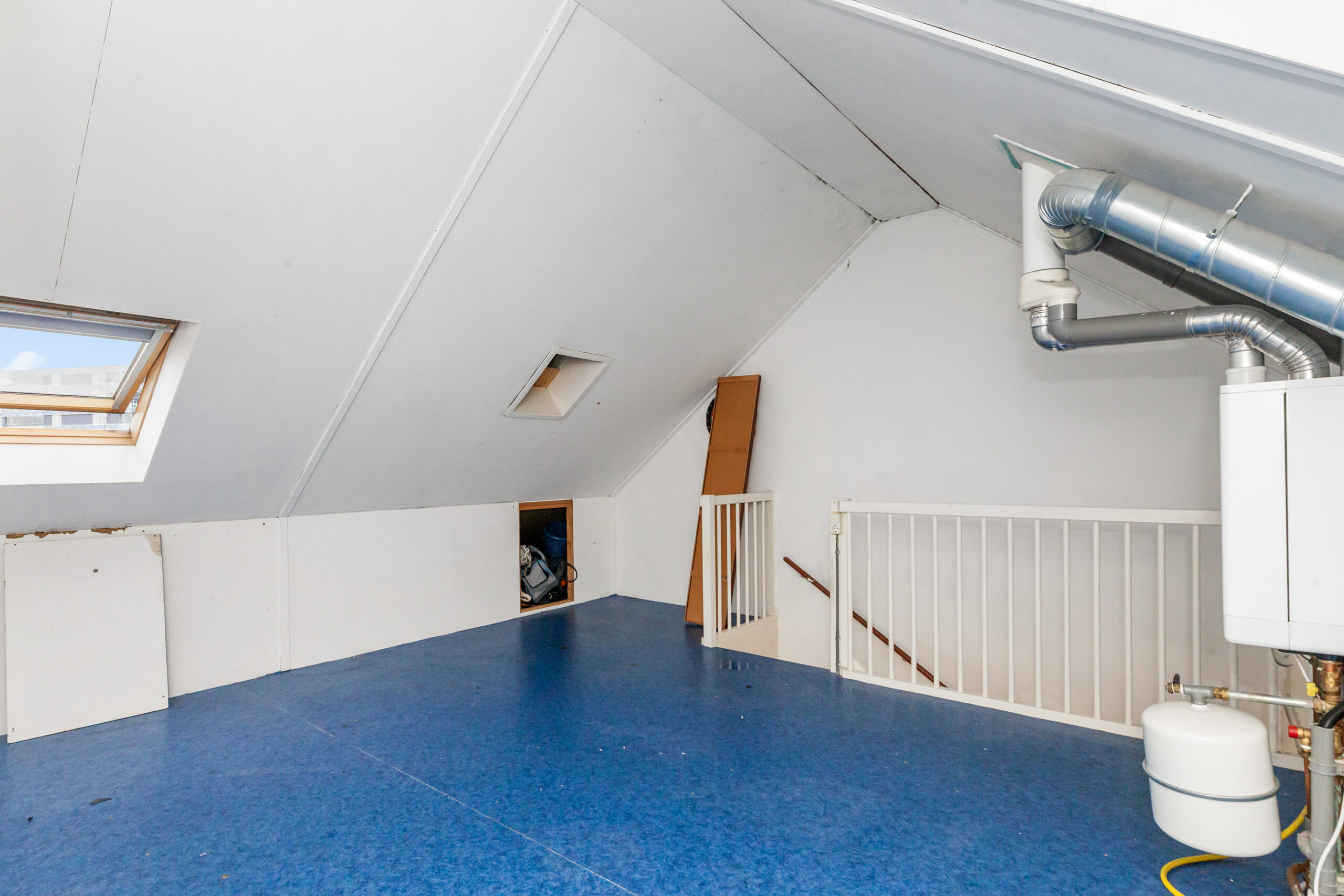 De zolderverdieping is momenteel één open ruimte welke u gemakkelijk kunt indelen met meerdere (slaap-)kamers. Aan de voorzijde is er een dakkapel en is er mogelijkheid om bijvoorbeeld aan de achterzijde ook een dakkapel te plaatsen, al liggen er wel 10 zonnepanelen aan die zijde. Onder de schuine dakdelen is er bergingen achter de knieschotten. Verder is de opstelling van de C.V.-ketel en de MV-box op deze verdieping.