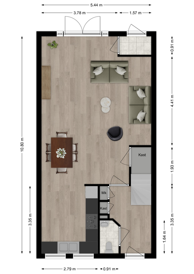 Welkom thuis! Door de uitbouw die aan de achterzijde gerealiseerd is, is hier een royale woonkamer ontstaan. Geheel in te delen hoe u het maar wenst! Er is alle ruimte voor een knusse zithoek en gezellige eethoek. Via de openslaande deuren kunt u direct naar de achtertuin en ook vanuit de achterhal. Daarnaast heeft u praktische opbergruimte in de trapkast en aan de voorzijde vloeit de kamer over in de keuken.
