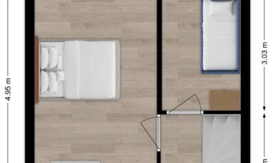 Eveneens aan de achterzijde bevindt zich deze tweede slaapkamer.