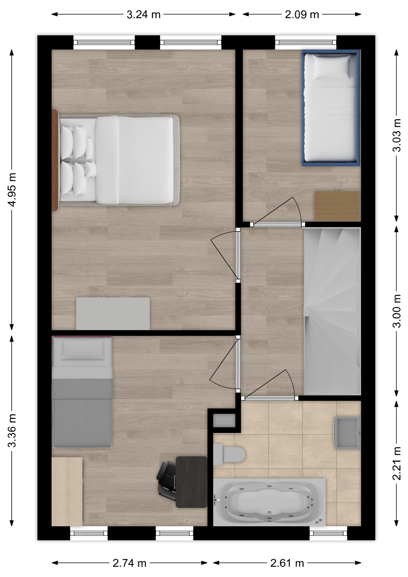 Maatvoering: Circa 3.36 x3.24/2.74m