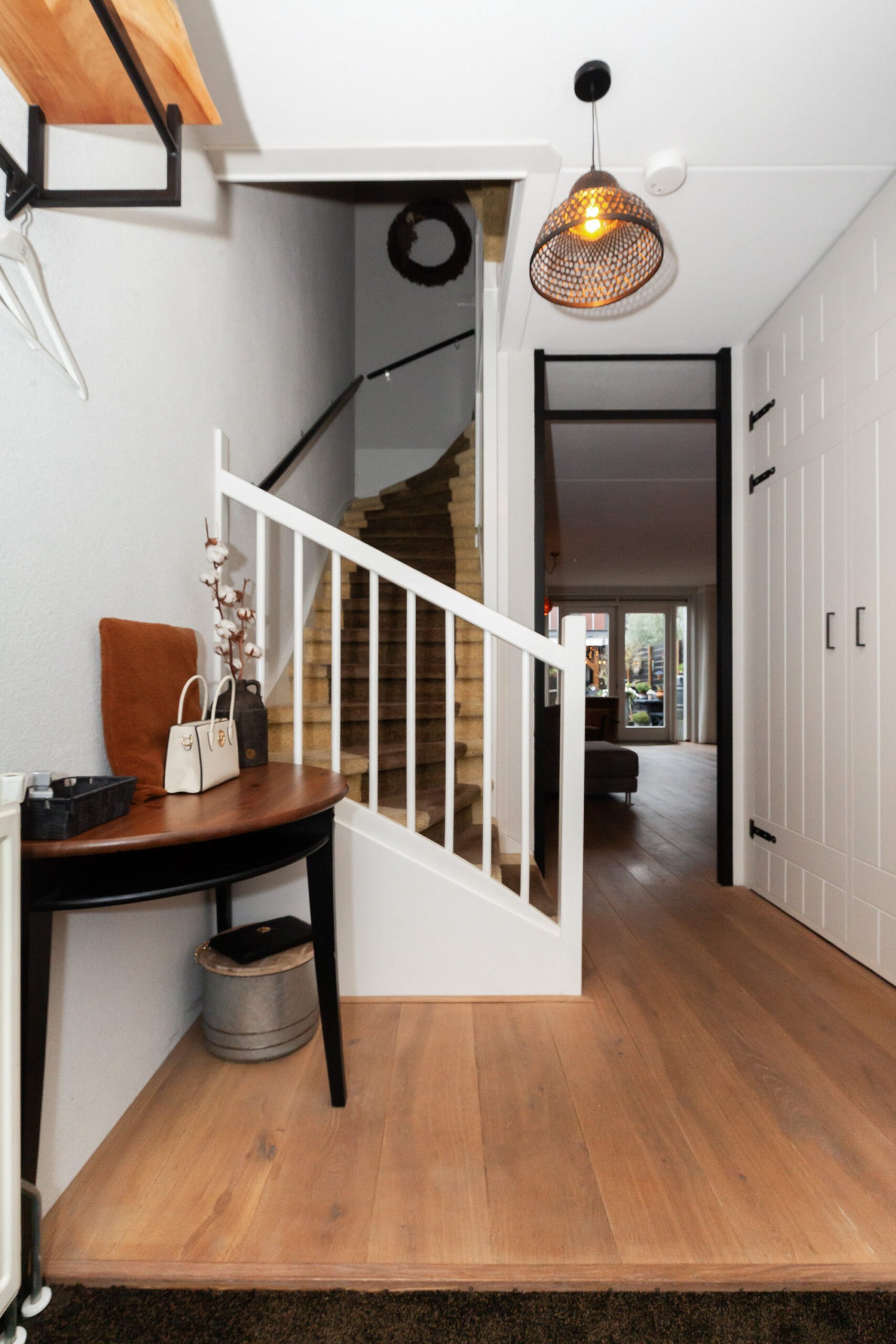 De hal is ruim van opzet en u heeft hier de toiletruimte, trap naar de verdieping een grote inbouwkast.