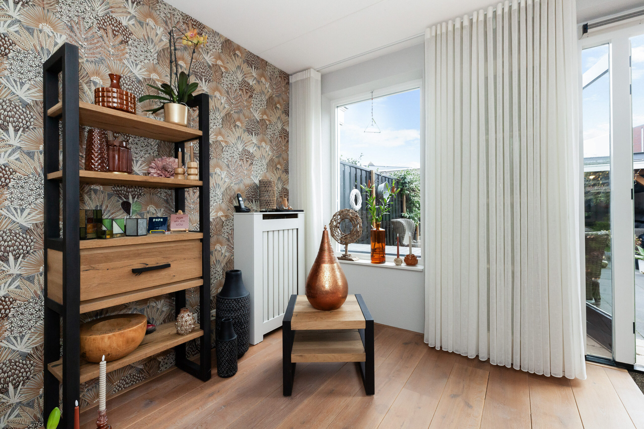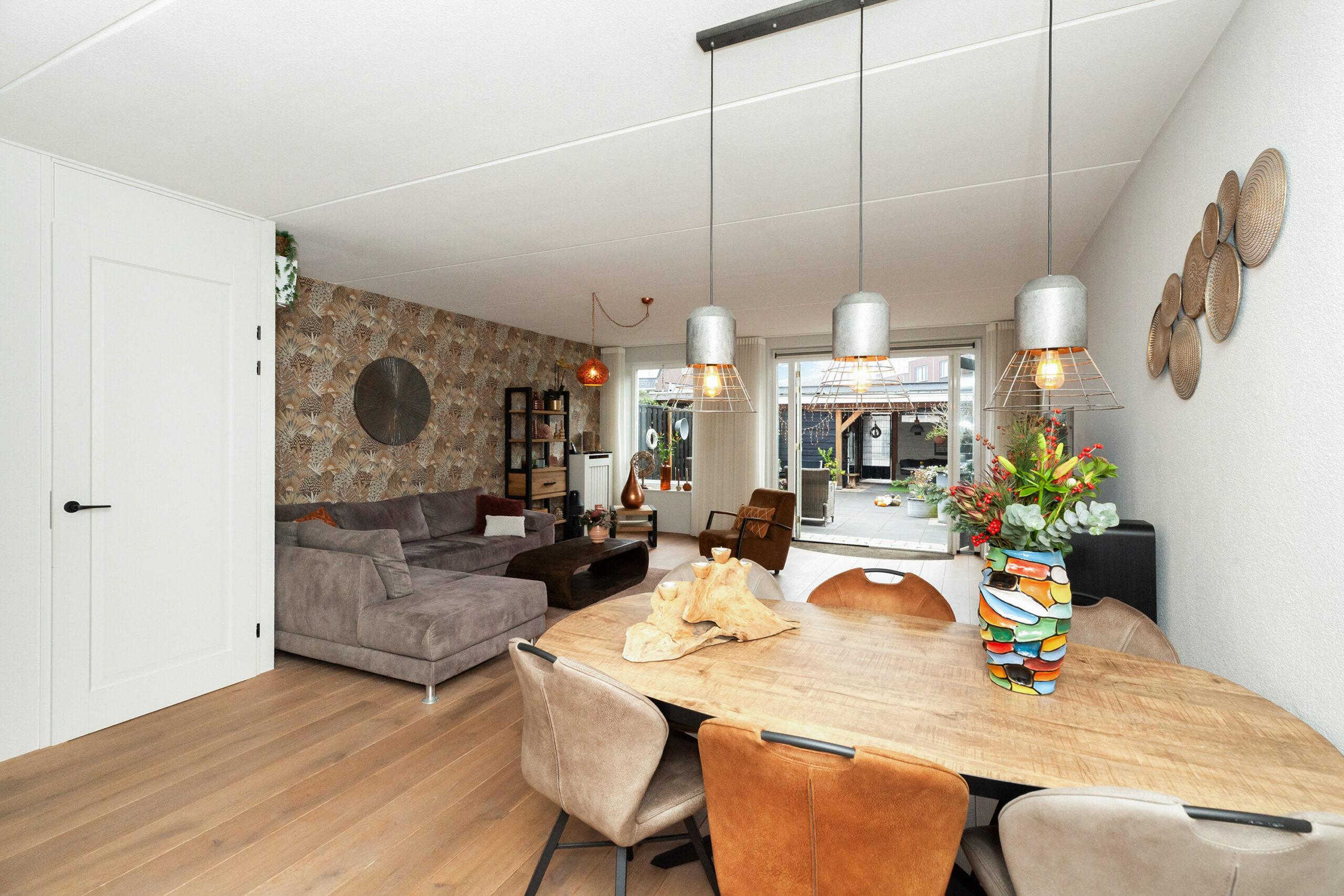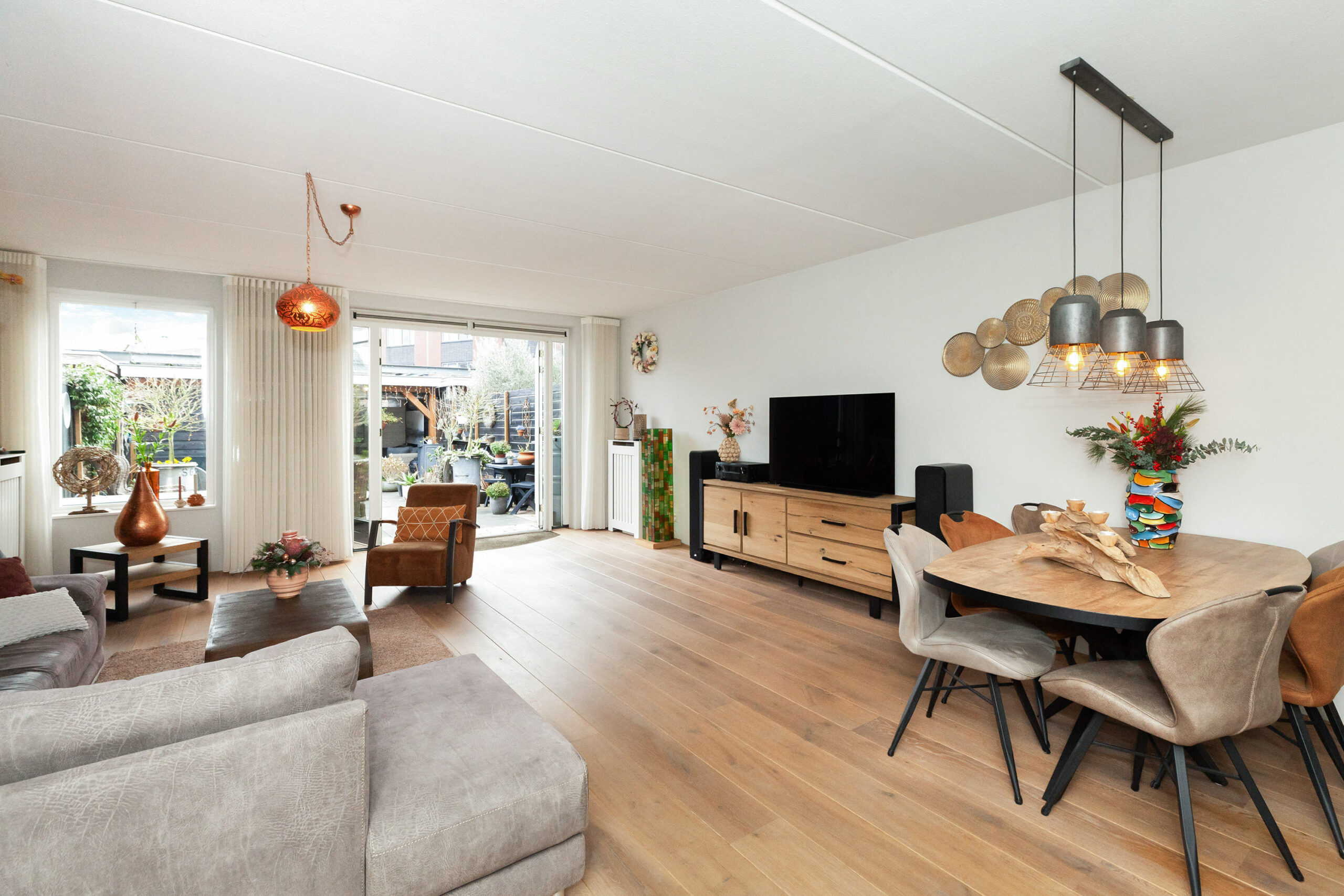 De woonkamer kenmerkt zich door sfeervolle en warme details, zoals de massief eikenhouten vloerdelen en de diverse raampartijen. De kamer biedt u volop ruimte voor een zit- en eethoek. Er is een airco en een praktische inloopkast voor het opbergen van allerhande proviand. Aan de achterzijde zorgen openslaande tuindeuren voor een fijne verbinding met de tuin.