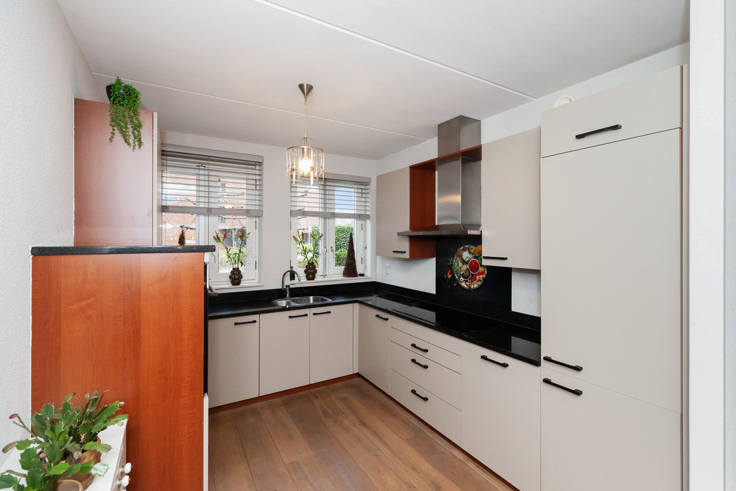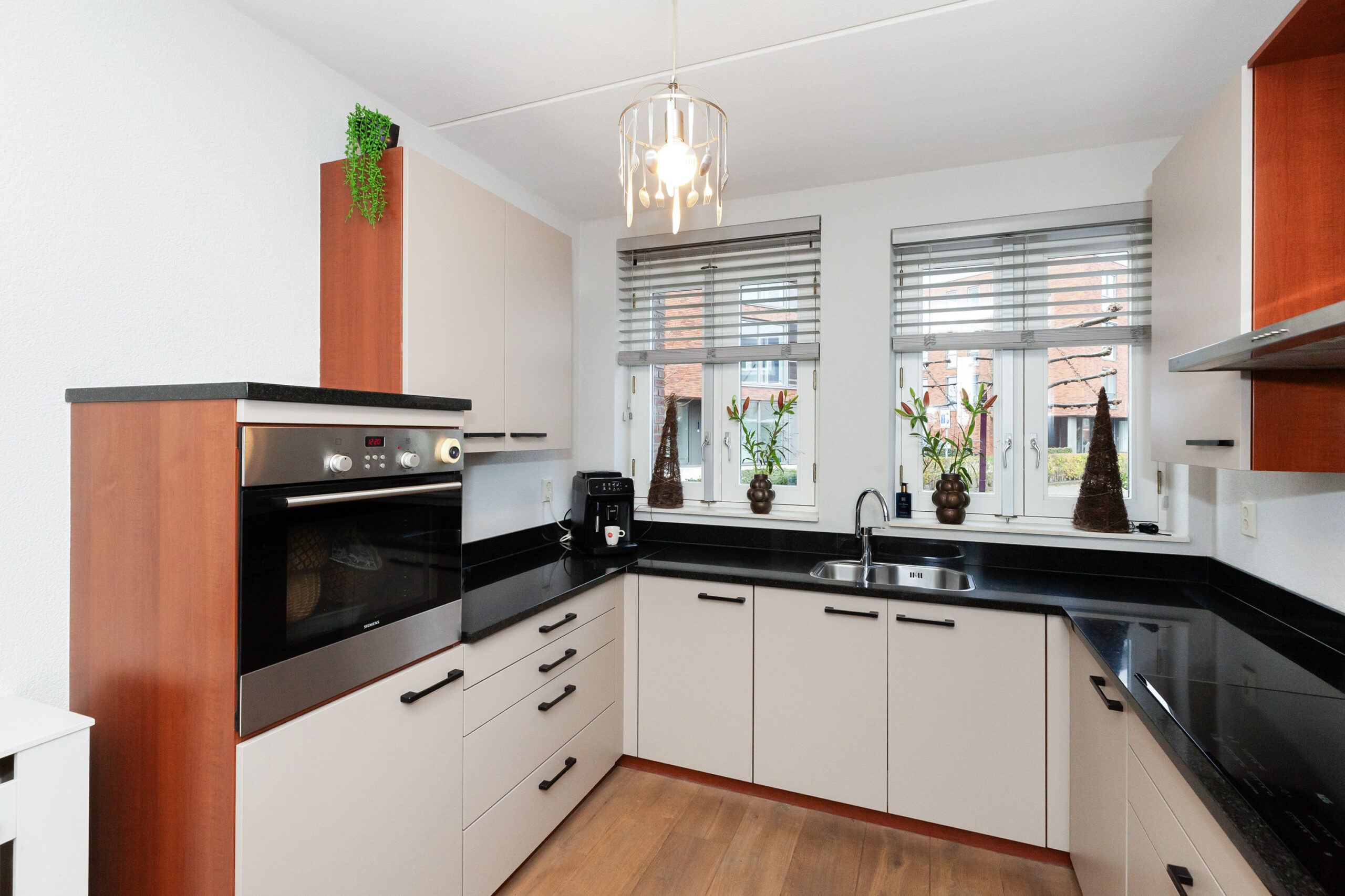 De keuken is geplaatst bij de bouw van de woning, maar verkeert dankzij het vervangen van de keukenfrontjes in 2023 en de door de jaren heen vernieuwde inbouwapparatuur nog steeds in keurige staat. In een praktische U-opstelling met een granietaanrechtblad treft u de keuken. Terwijl u heerlijk aan het kokkerellen bent, bieden de ramen u leuk en levendig uitzicht over de straat. Aan inbouwapparatuur heeft u de beschikking over een uitgebreide inductiekookplaat, afzuigkap, vaatwasser, koel-/vriescombinatie en oven. De keuken staat in halfopen verbinding met de woonkamer.