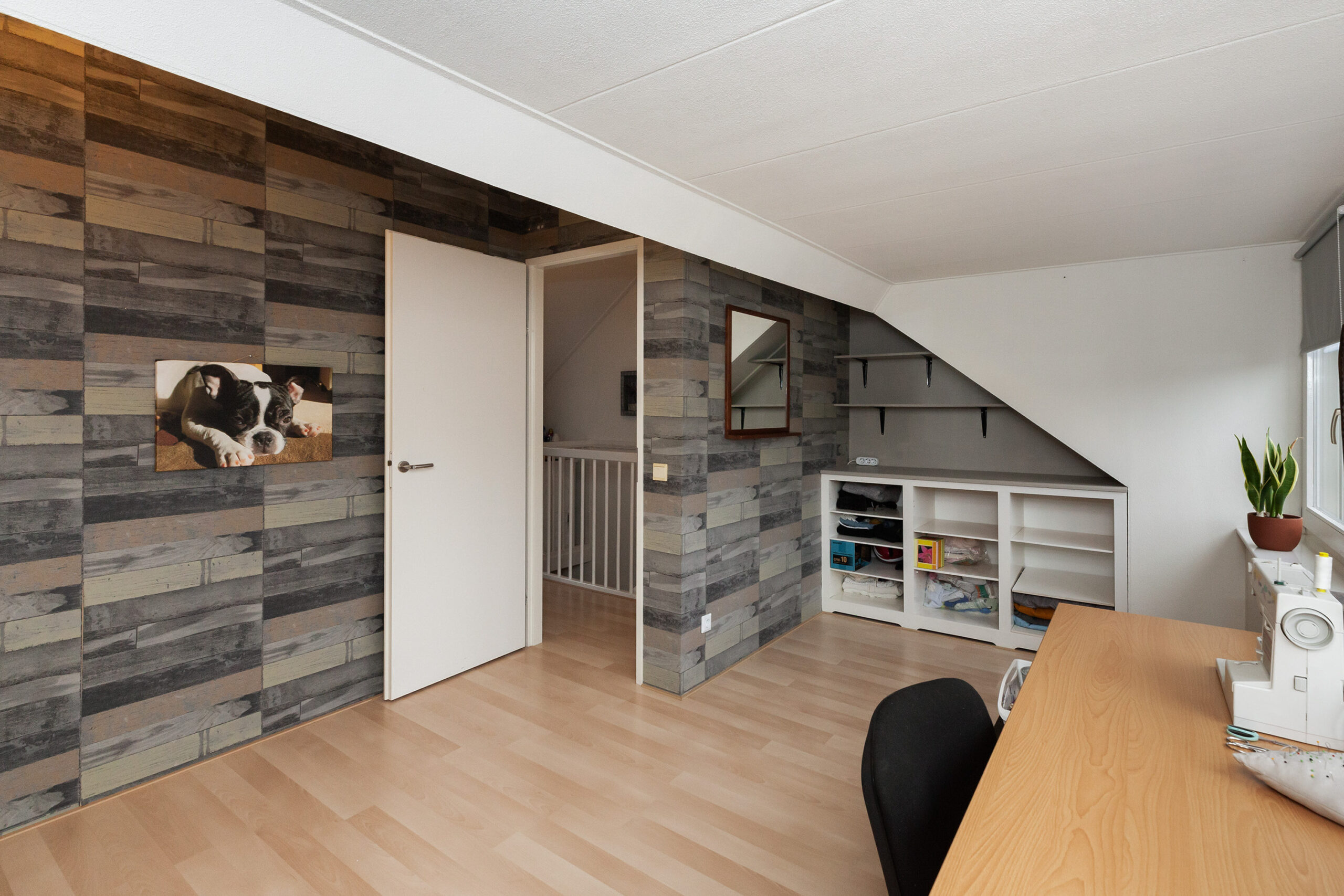 De laatste slaapkamer van deze woning is dan aan de voorzijde gesitueerd en heeft ook een dakkapel met bergruimte onder het schuine dak.