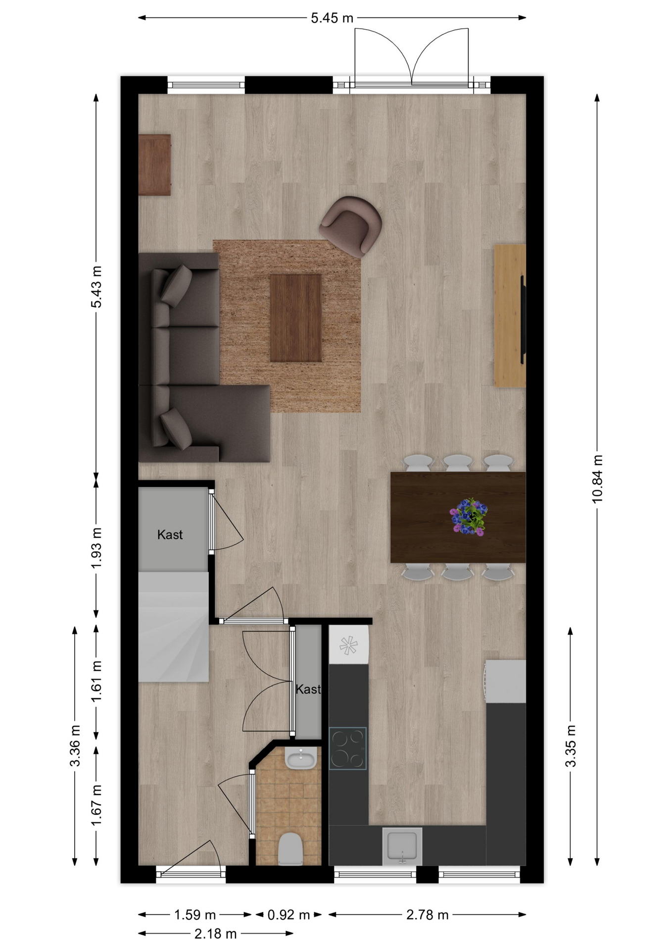 Maatvoering: Circa 5.45 x 3.24/2.12m