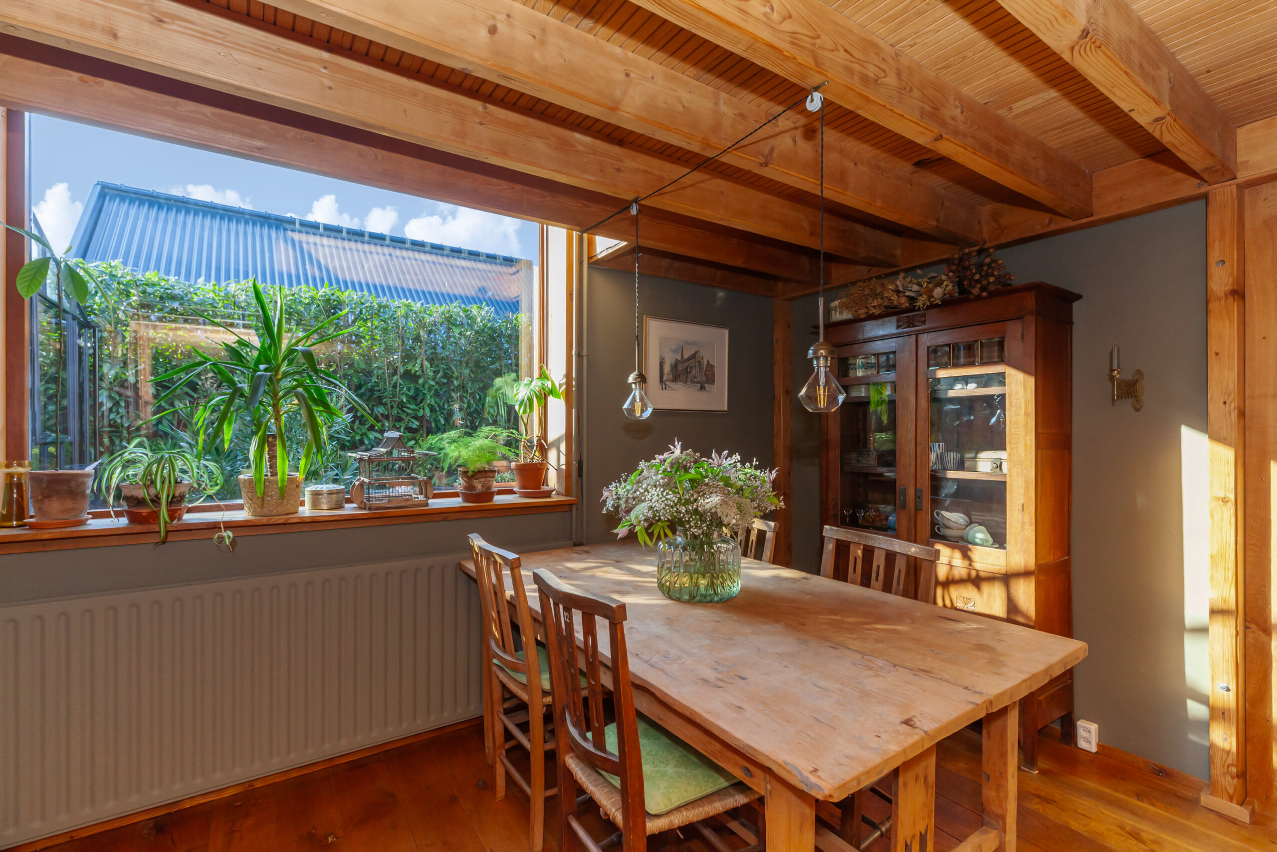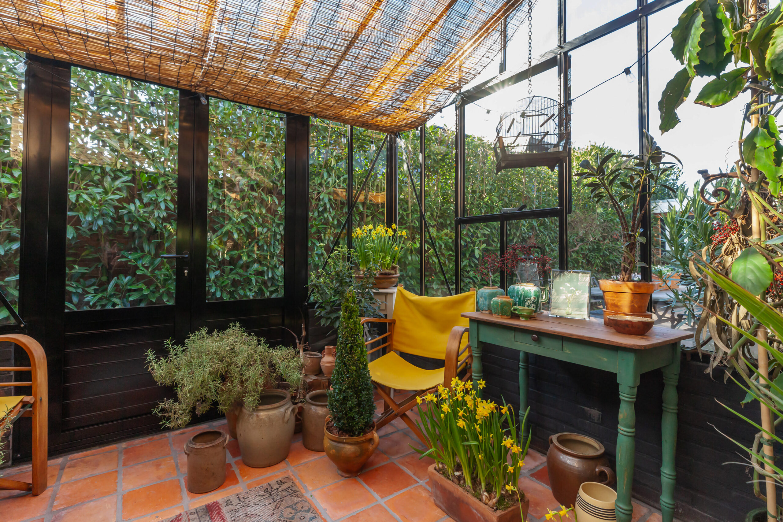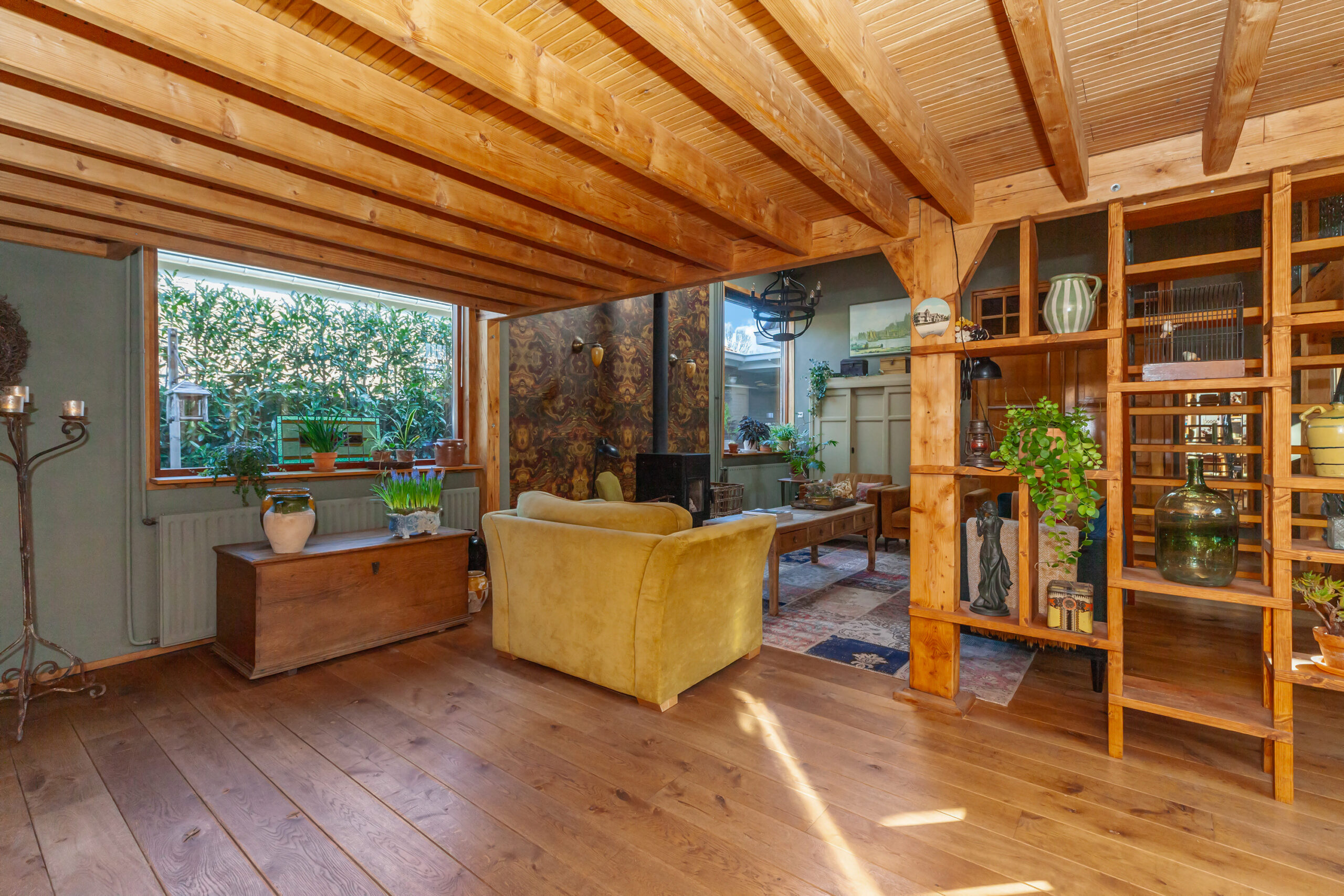 Vanuit de woonkamer heeft u toegang tot een in 2024 aangebouwde muurkas met op de vloer antieke estriken. Heerlijk om in de winter in het zonnetje te zitten!