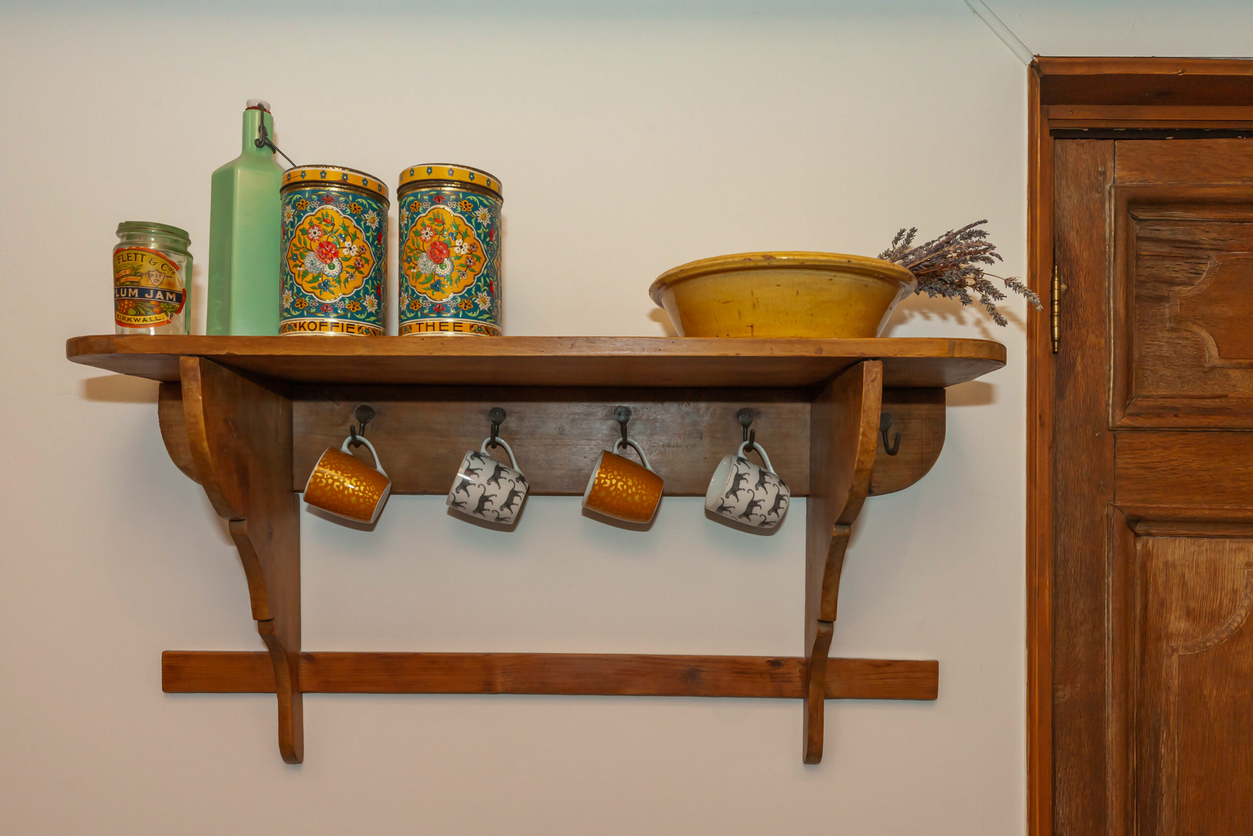 Gelijk passend in stijl komt u binnen in de vestibule welke afgesloten is met een tochtdeur. Deze deur komt uit een voormalig broederklooster in Waalwijk.