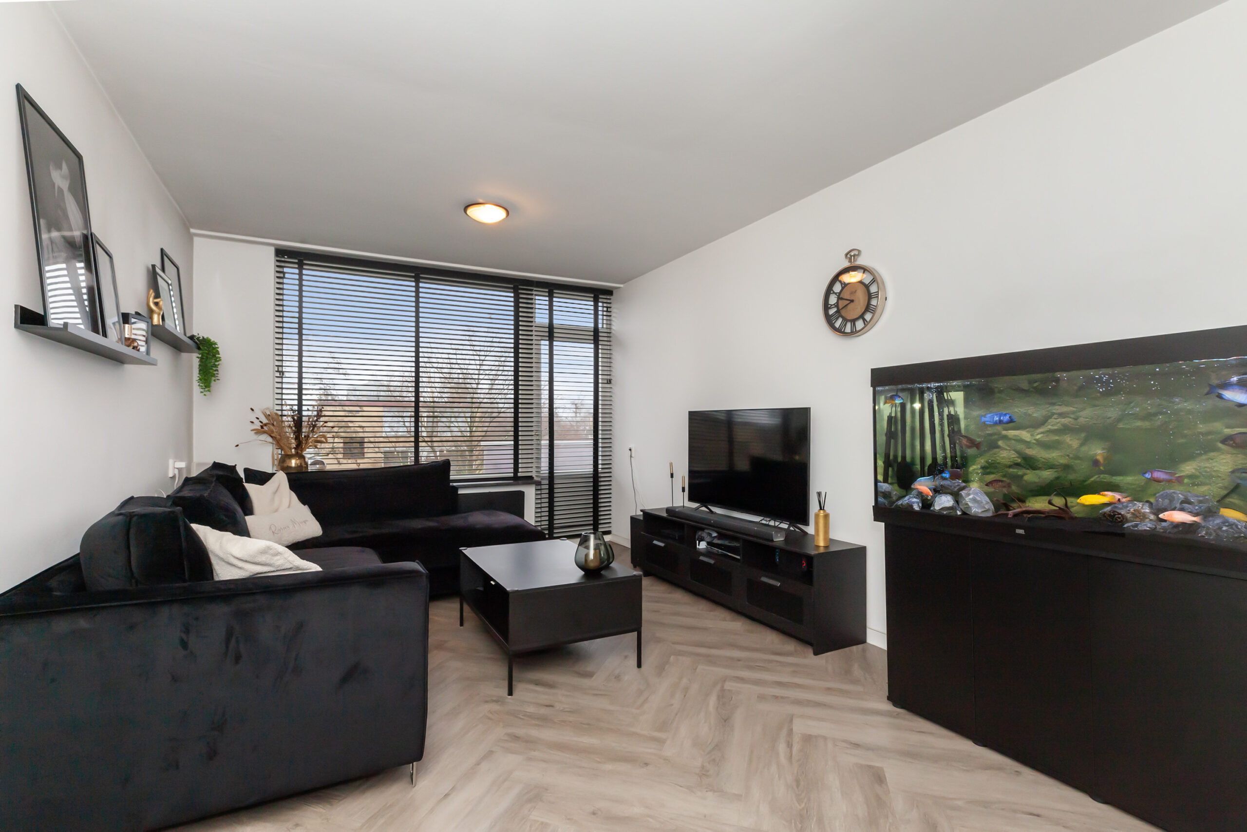 De woonkamer is heerlijk ruim van opzet en biedt voldoende plaats voor een gezellige zithoek. Daarbij heb je ook mogelijkheid om hier een eettafel te plaatsen, alhoewel dat ook goed past in de keuken. Vanuit de kamer is er toegang tot het balkon.