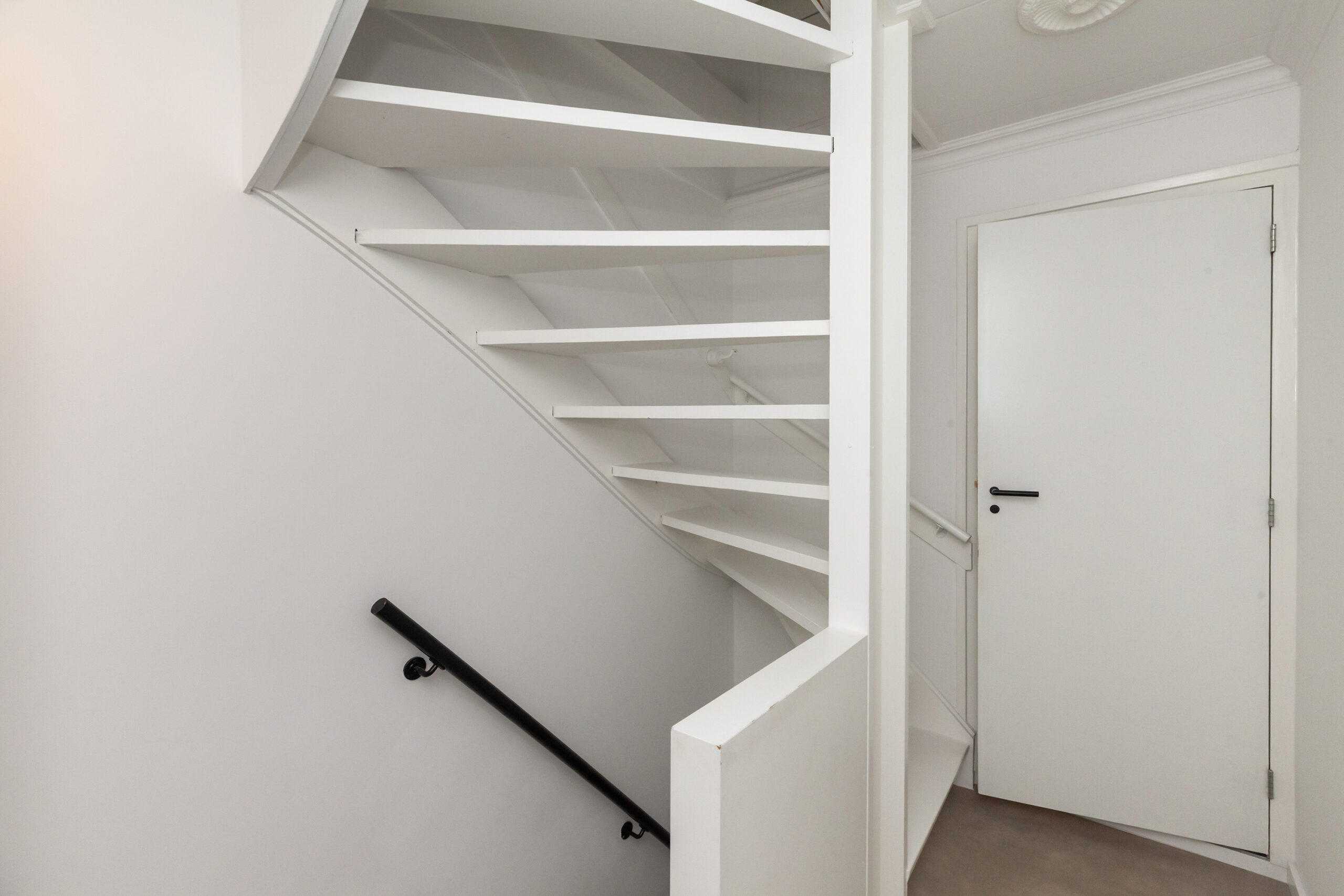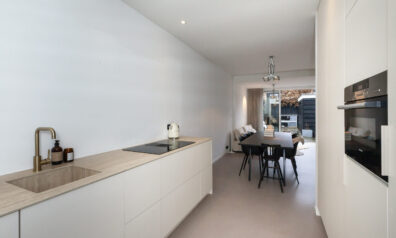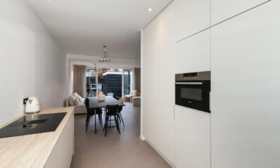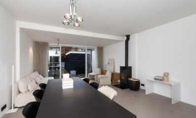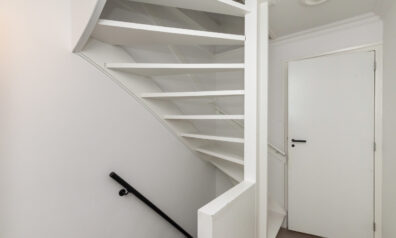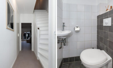 Direct bij binnenkomst ziet u de lichte en strakke afwerkingen. Aan de ene zijde heeft u de toiletruimte en de trap naar de eerste verdieping. Loopt u verder dan heeft u aan de linkerzijde de meterkast en een praktische inbouwkast voor bijv. schoenen op te bergen.