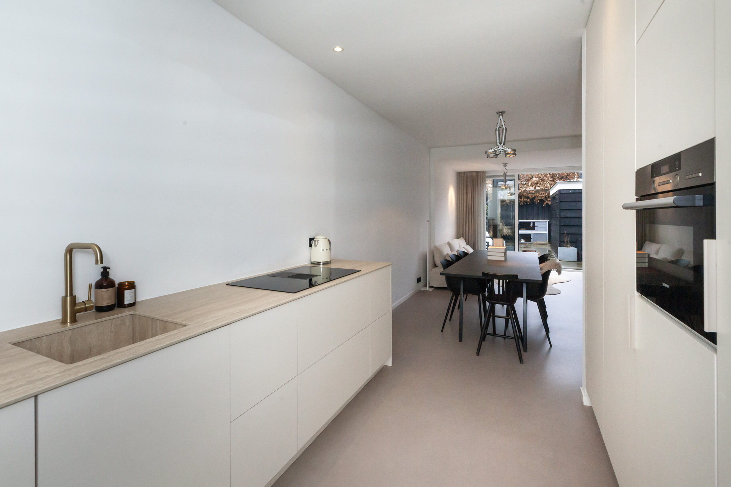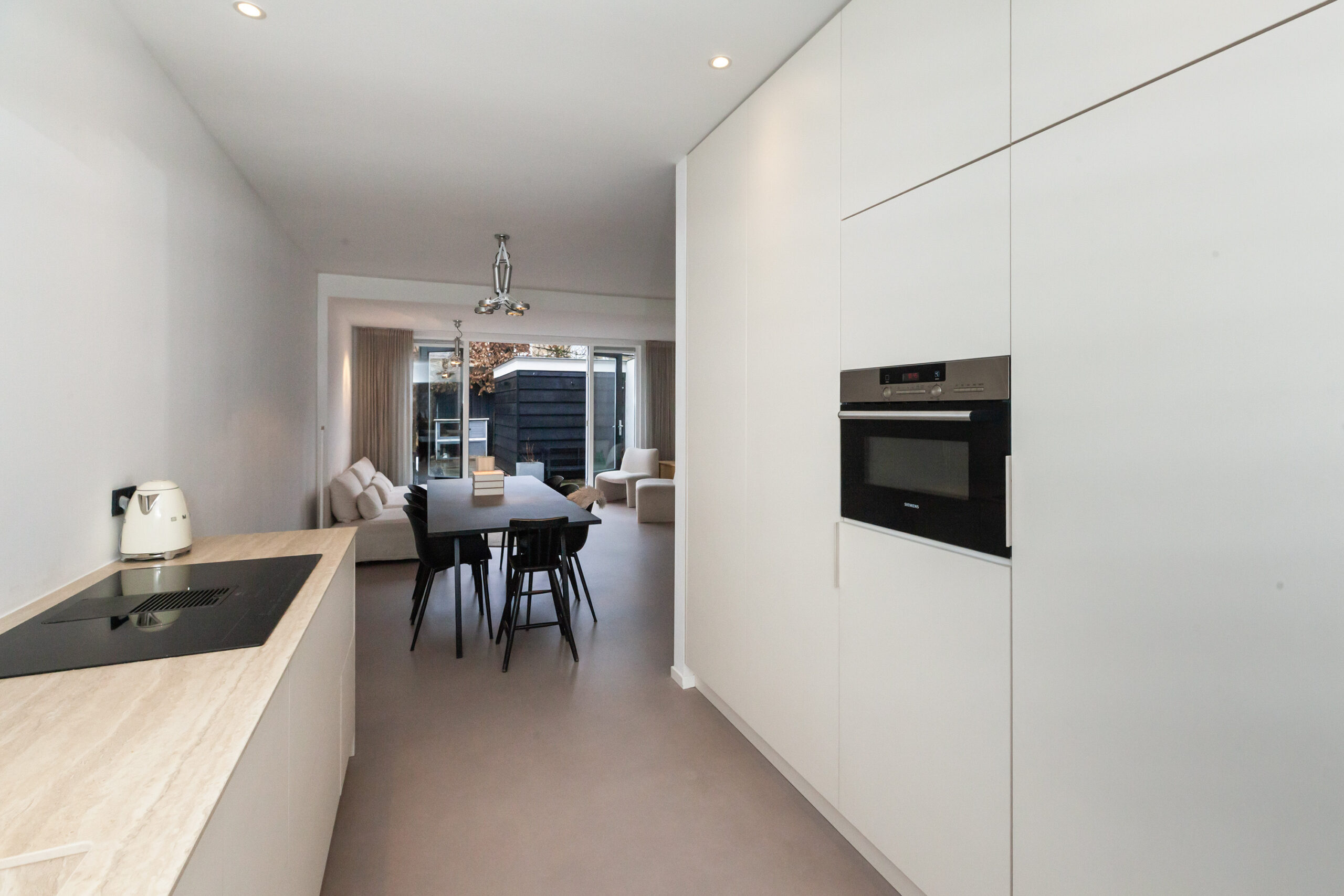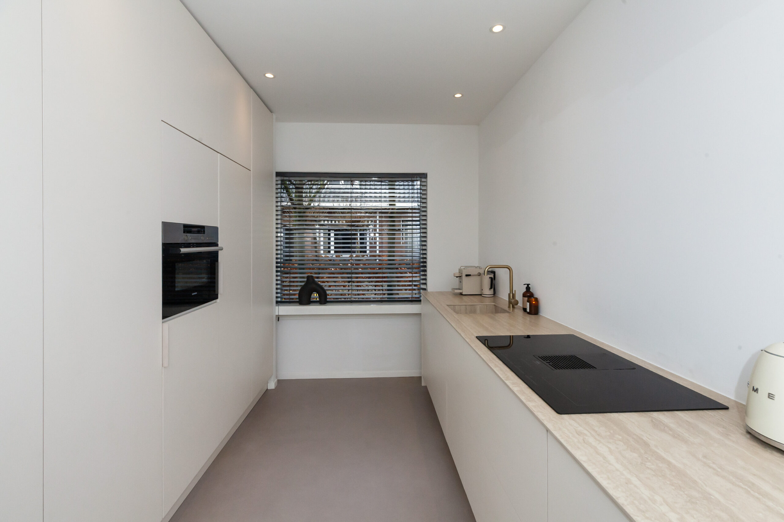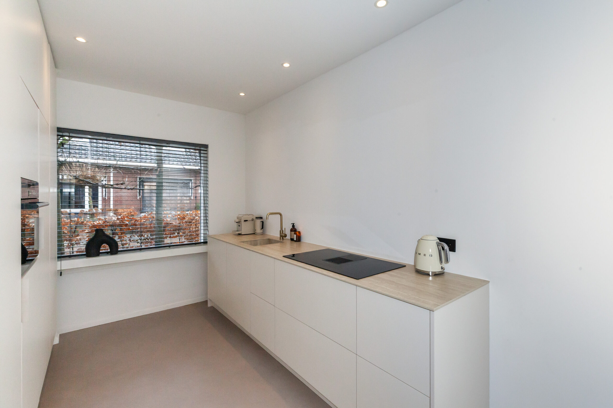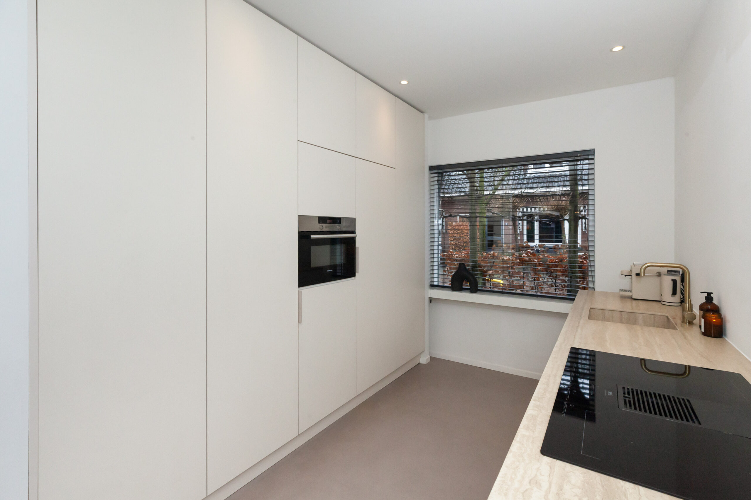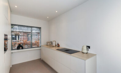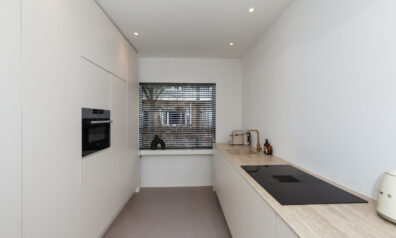 De keuken is in 2023 geplaatst en aan de voorzijde gesitueerd. U kijkt tijdens het kokkerellen leuk weg over de voorgelegen straat. Naast veel opbergruimte in de keukenkastjes is deze keuken compleet uitgevoerd met een inductiekookplaat met recirculatie afzuiging, vaatwasser, koelkast, vriezer en combi-oven.