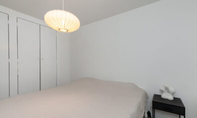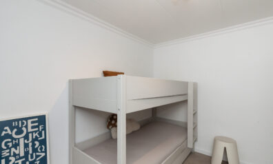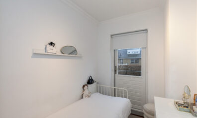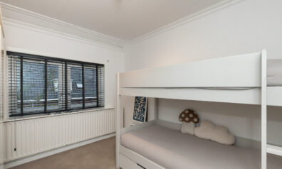 Achter de eerste schuifdeur gaat deze kamer schuil, nagenoeg identiek zijn beide slaapkamers, en deze kamer heeft een extra tuimelraam.
