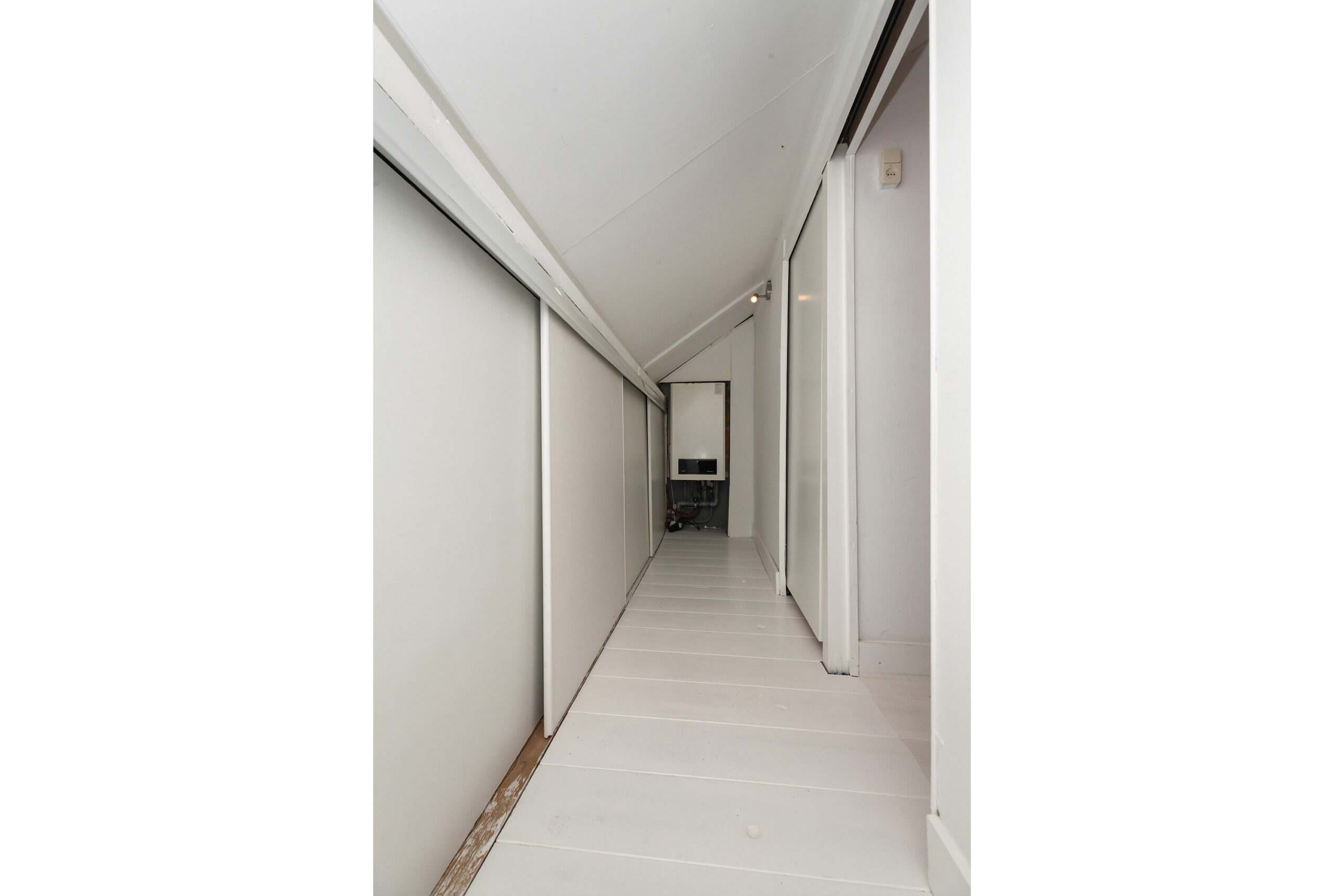 Door de dakopbouw zijn er een tweetal slaapkamers naast de overloop gerealiseerd op deze verdieping. Op de overloop heeft u de opstelling van de C.V.-ketel en bergingen onder het schuine dak.