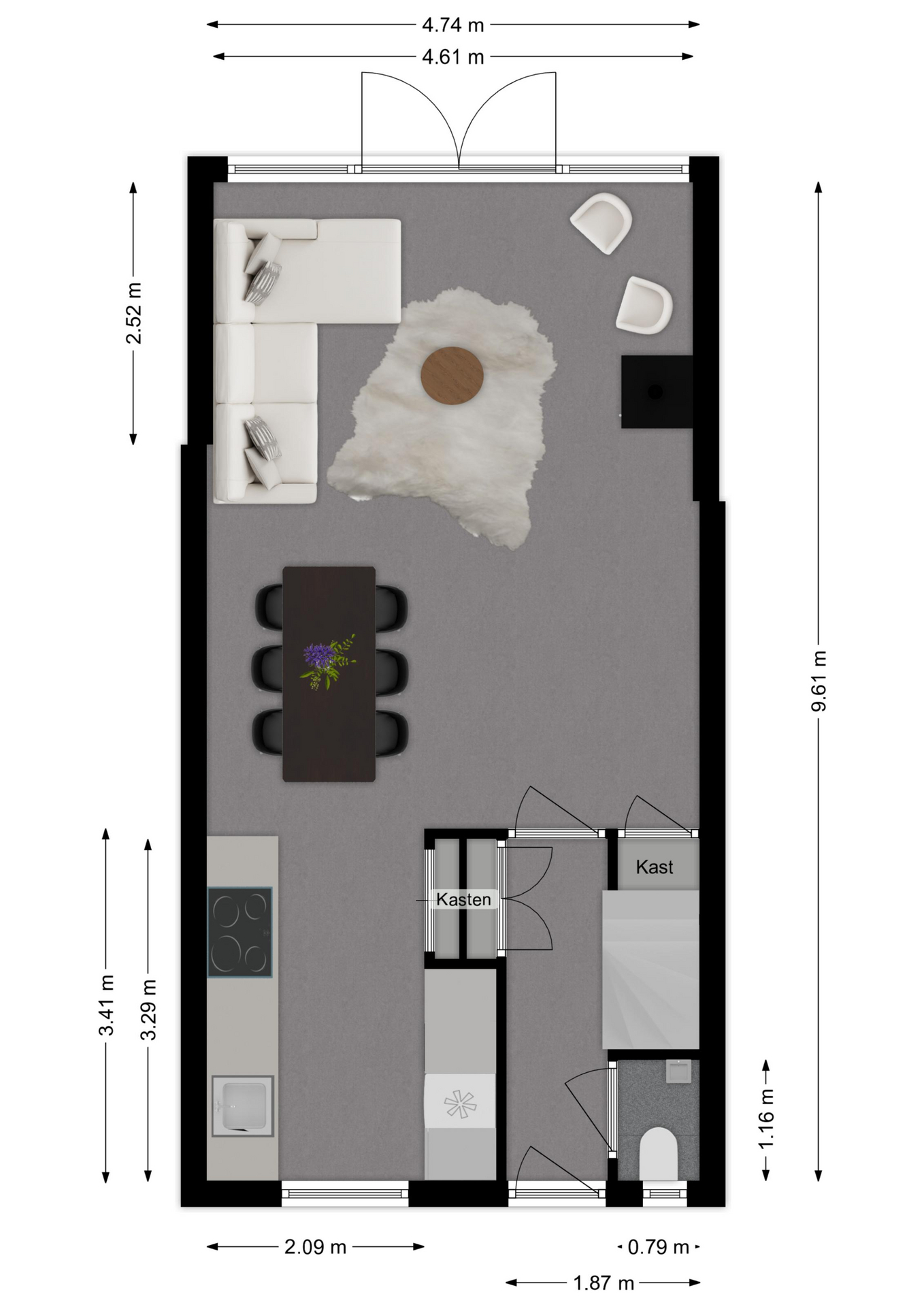 Maatvoering: Circa 4.8 x 0.79m