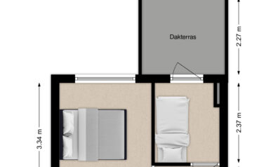 Deze tweede slaapkamer treft u eveneens aan de achterzijde en geeft toegang tot het dakterras van circa 2.50 x 2.27m.