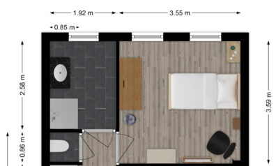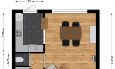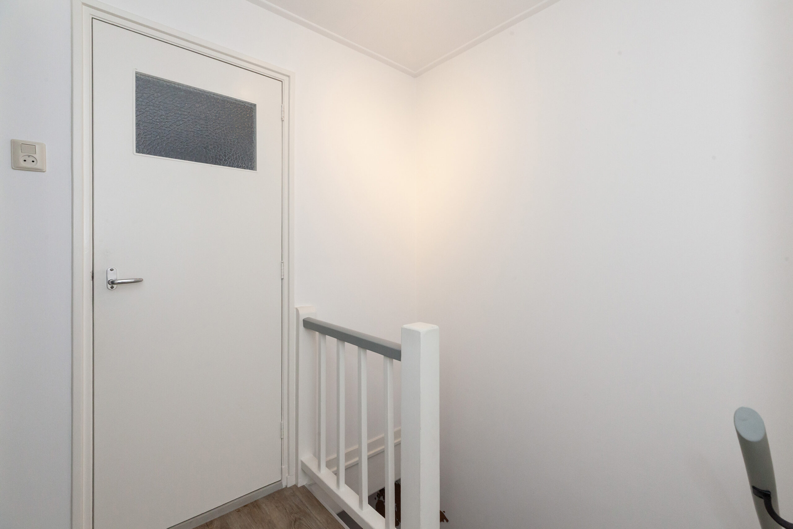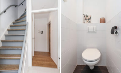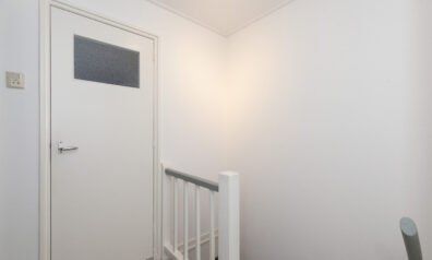 In de ontvangstruimte heeft u de meterkast, trapopgang naar de verdieping, trapkast en toiletruimte. Via de schuifdeur komt u in de woonkamer.