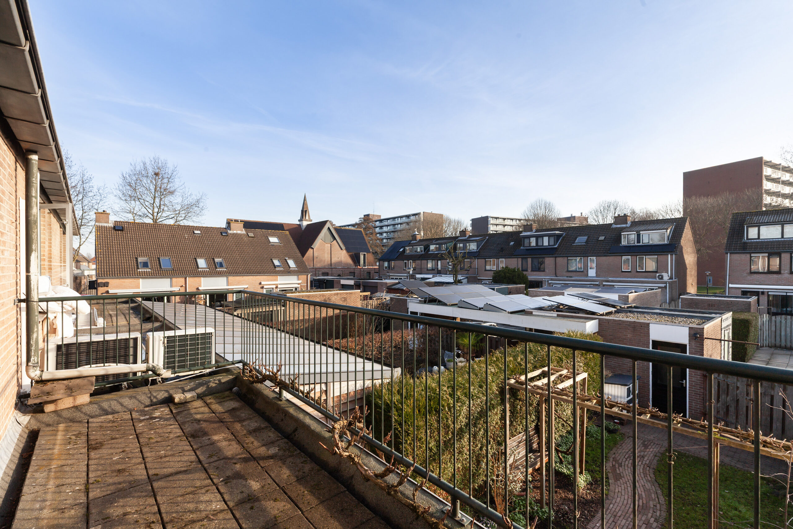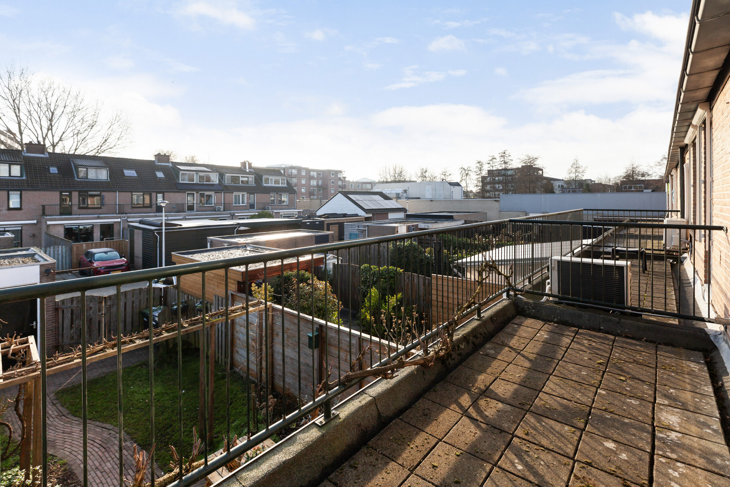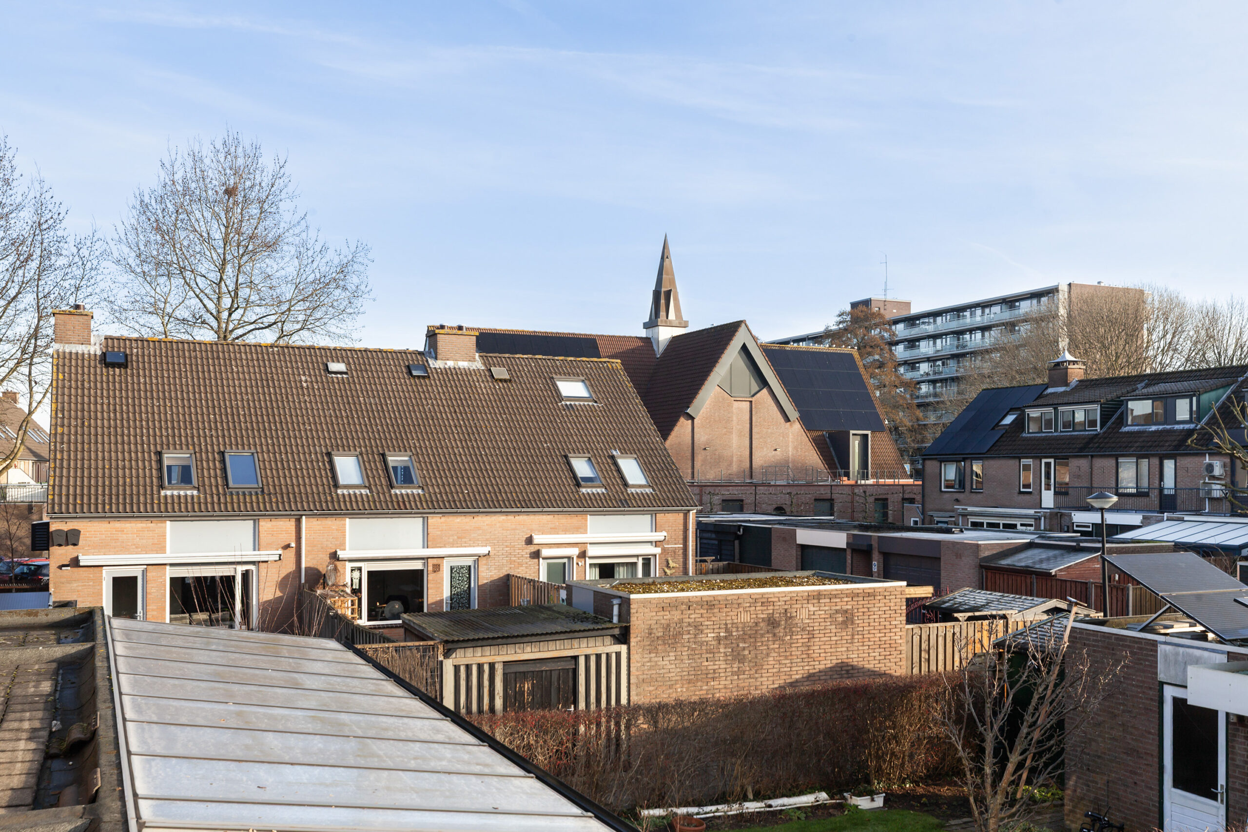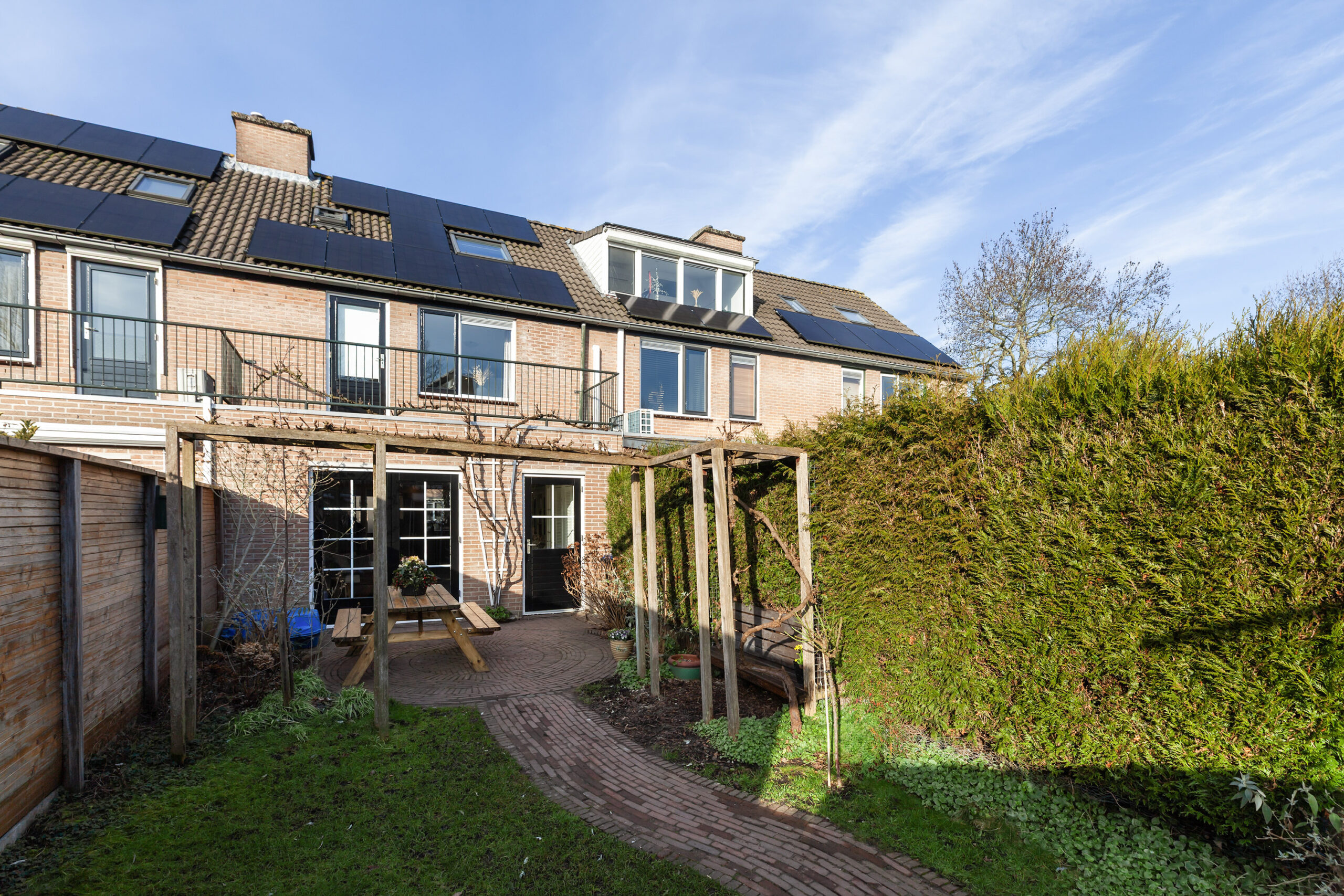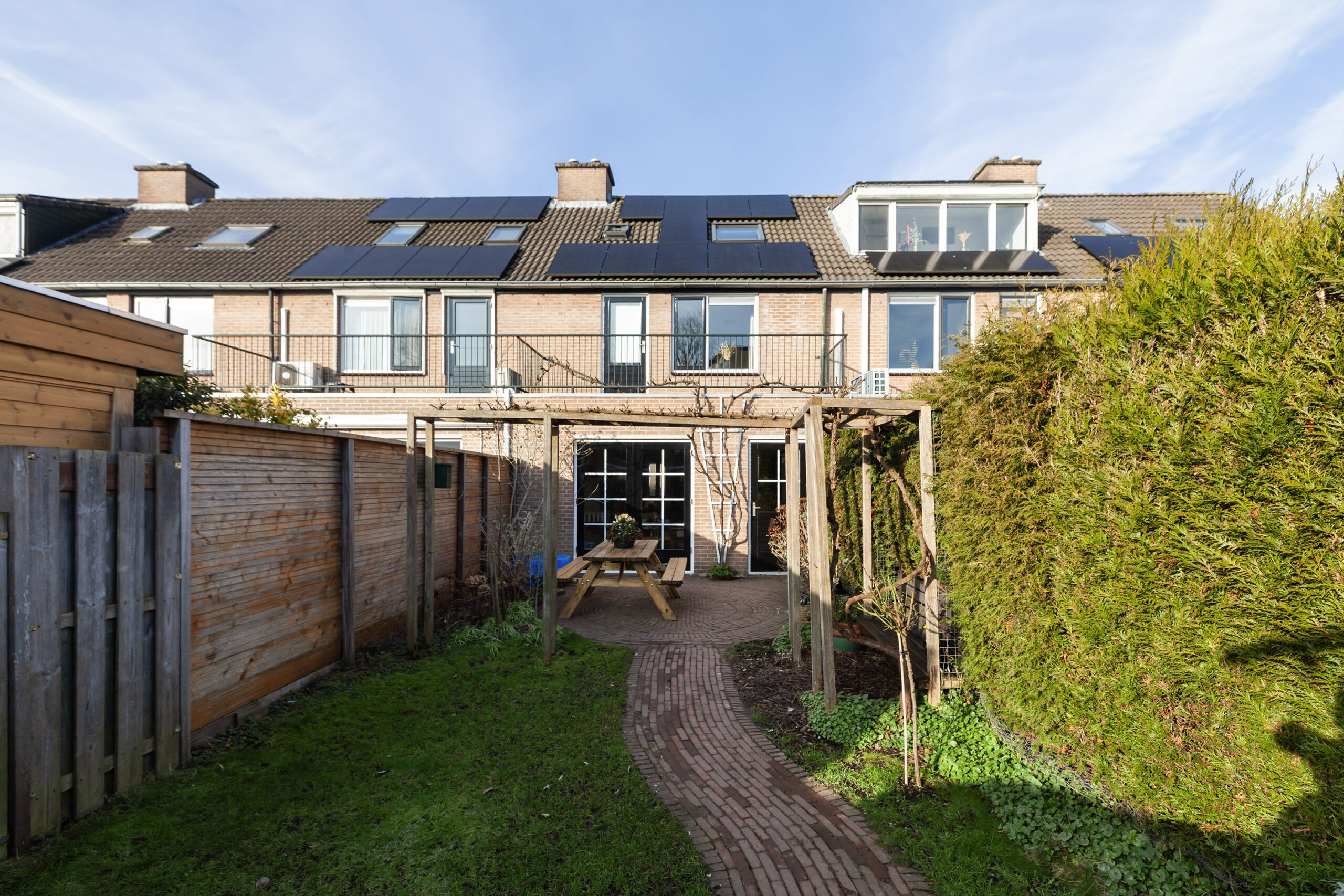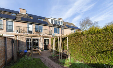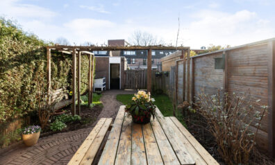 Achter de woning ligt een diepe tuin welke aangelegd is met een terras, een frisgroen gazon en diverse beplantingen. U kunt zich wel voorstellen hoe de druif groeit in de zomermaanden langs het dakterras en de pergola. Achterin de tuin heeft u een stenen berging van circa 2.51 x 2.48m met ernaast de poort naar de eigen parkeerplaats. Ook daar heeft u nog een extra berging van circa 2.51 x 1.83m.