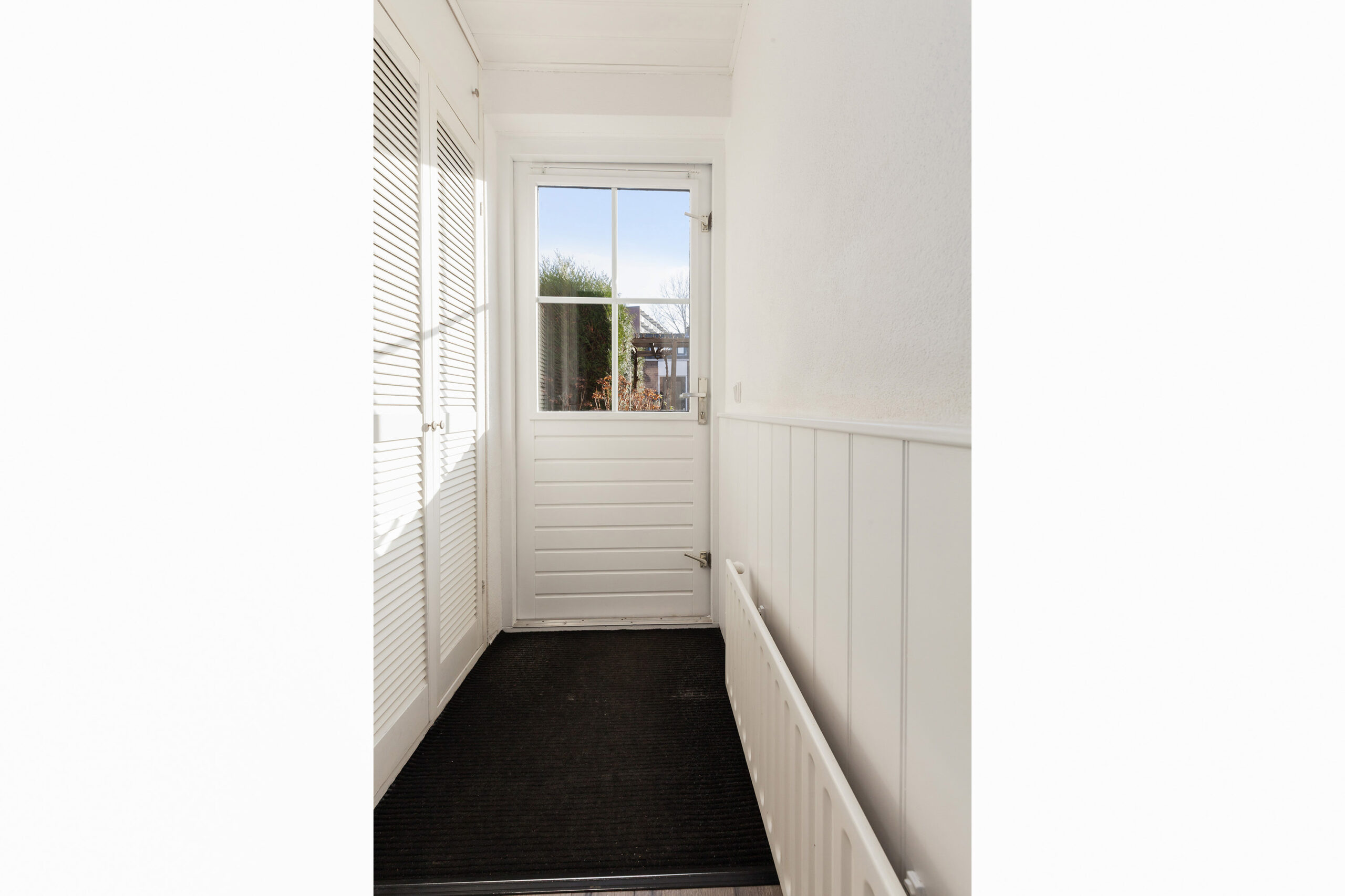 Deze is voorzien van een kastenwand van circa 1.83 x 0.38m. Zeker met kinderen bijvoorbeeld is dit ideaal te gebruiken voor het opbergen van jassen en schoenen. Via de achterhal is er namelijk toegang tot de achtertuin.