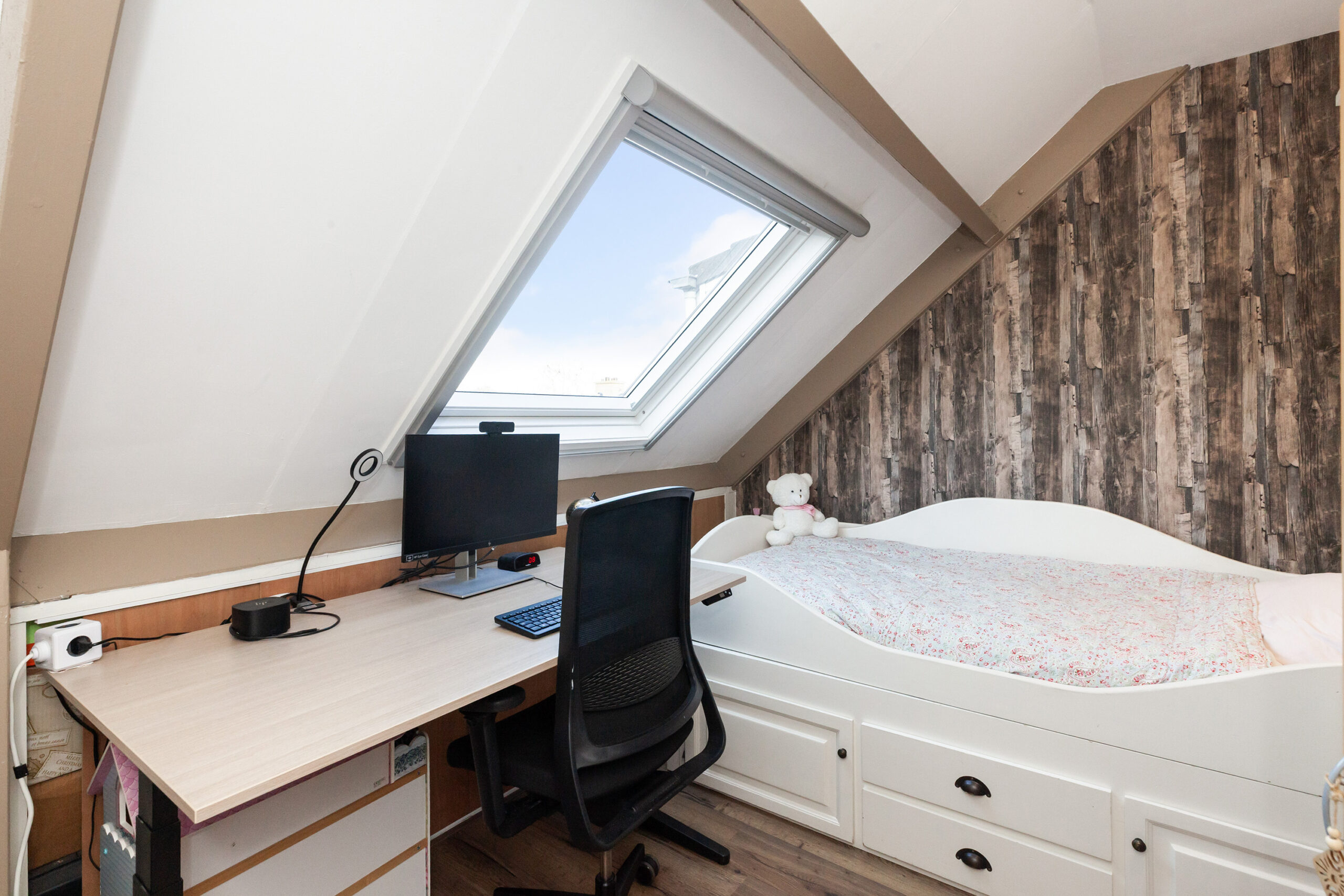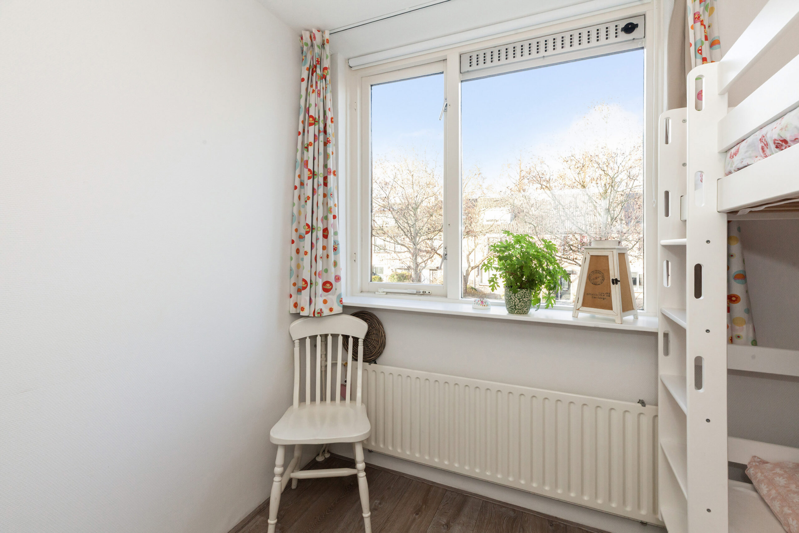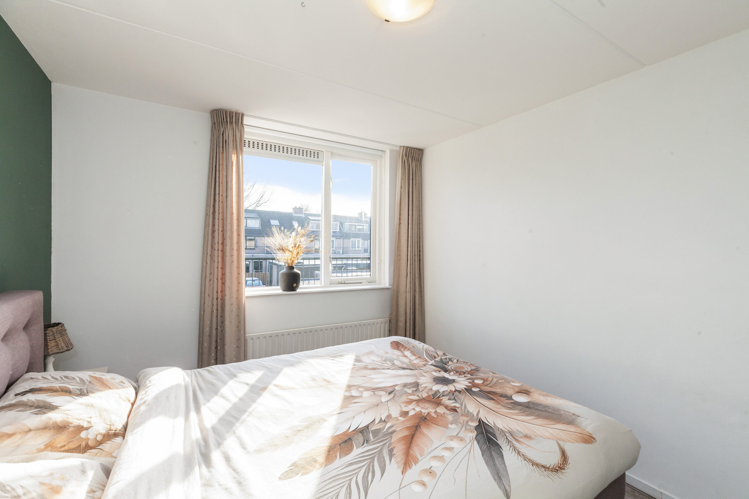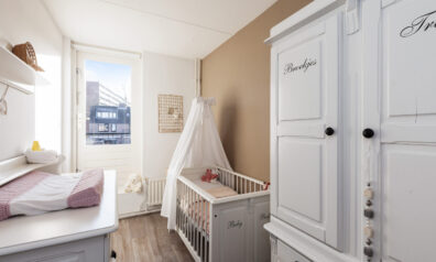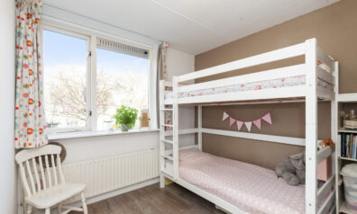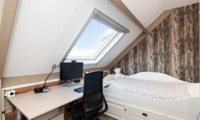 Tot slot de laatste slaapkamer, deze is aan de achterzijde gesitueerd en dan ook voorzien van bergruimte en een tuimelraam.