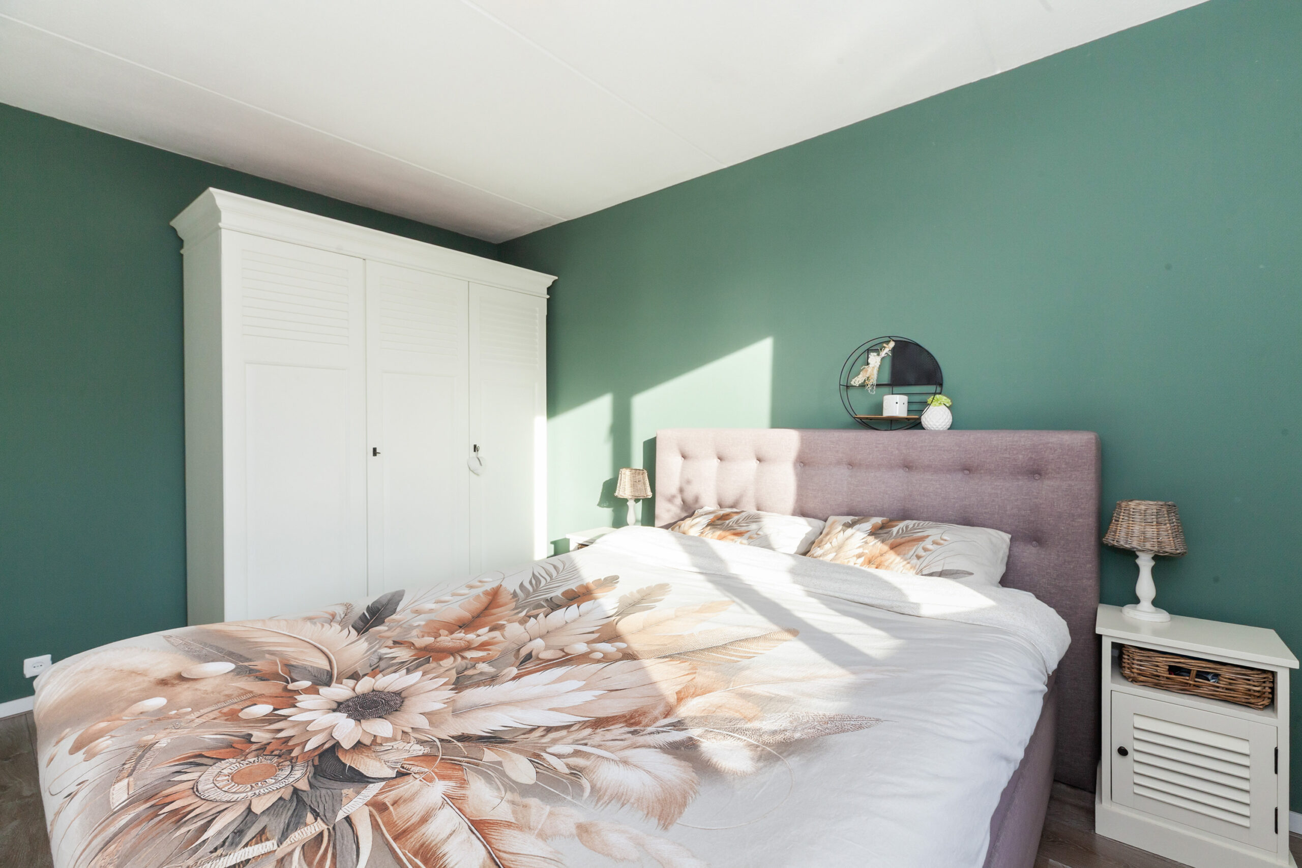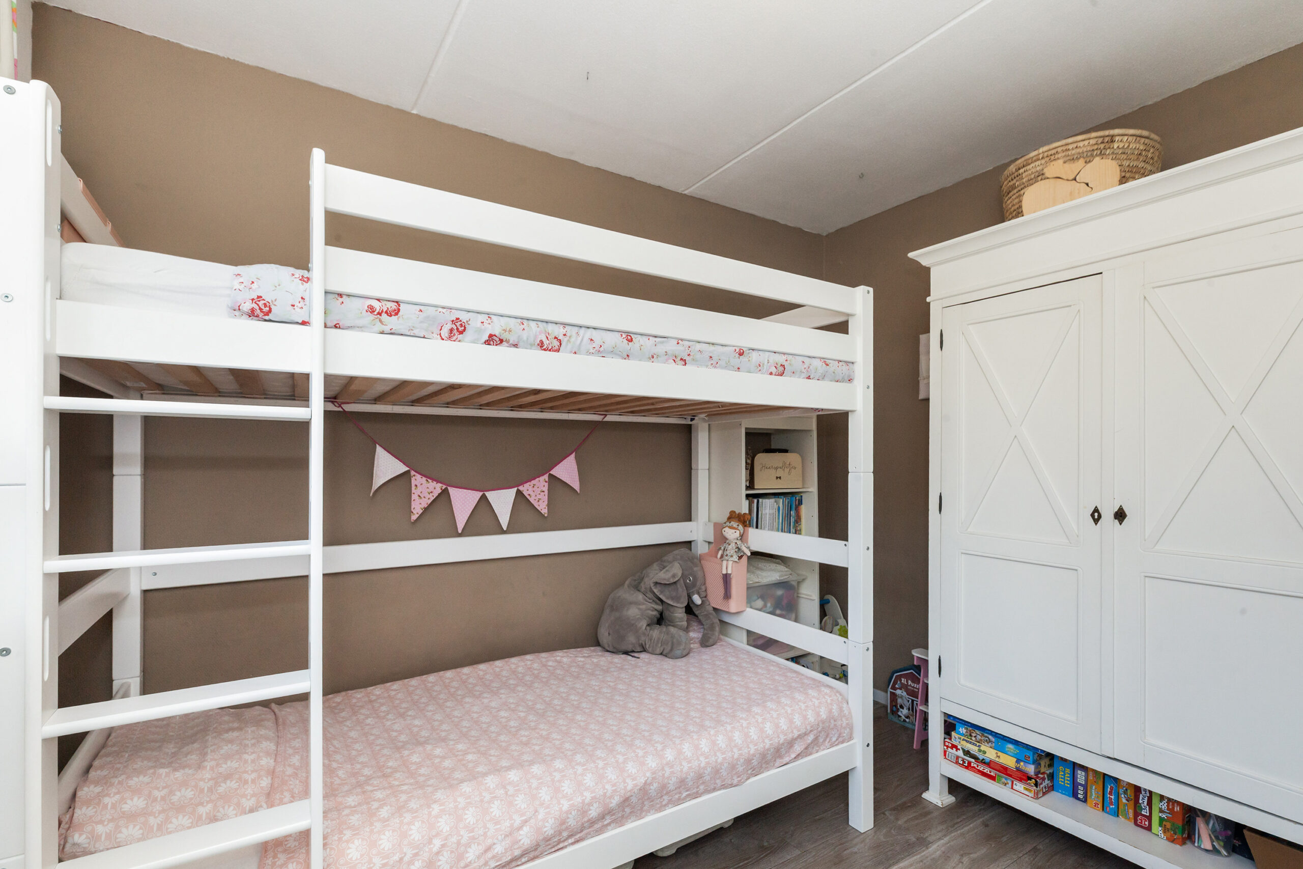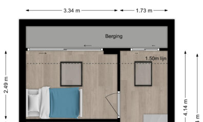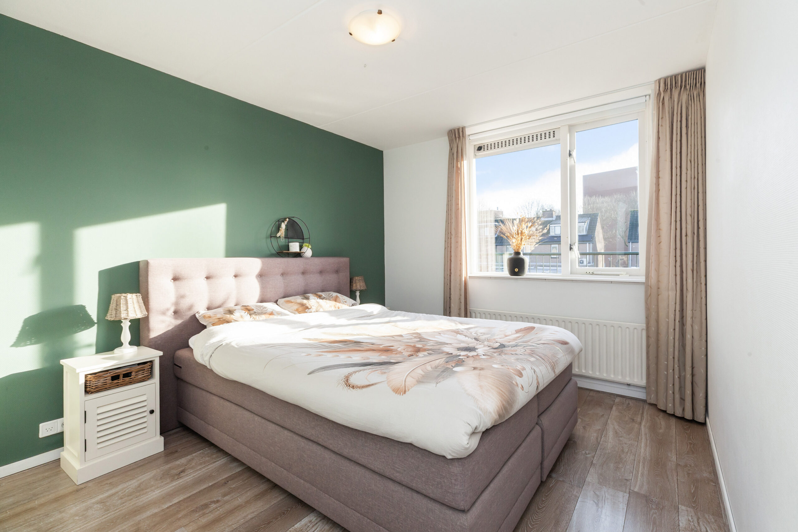 Tot slot de laatste slaapkamer, deze is aan de achterzijde gesitueerd en dan ook voorzien van bergruimte en een tuimelraam.