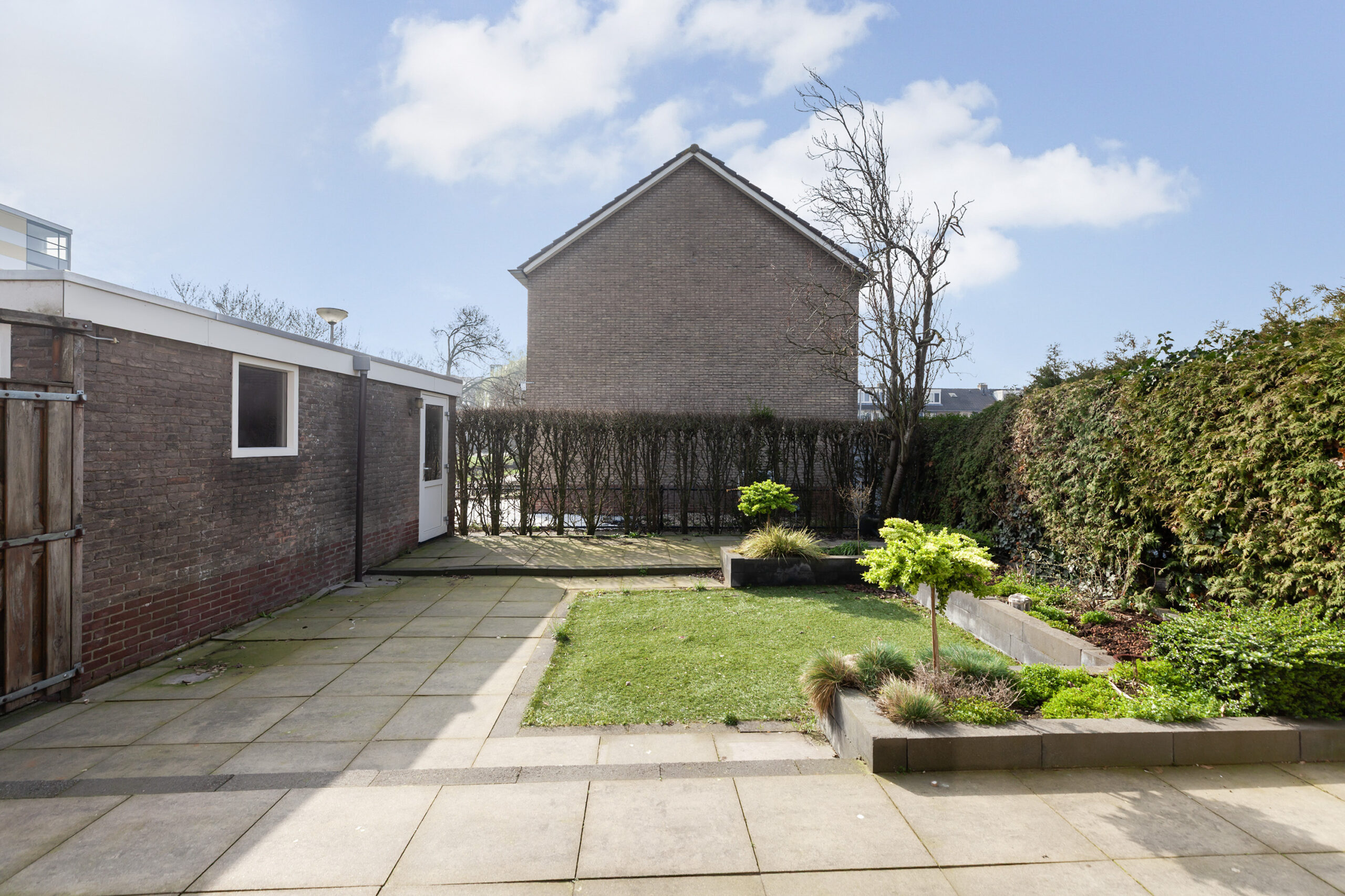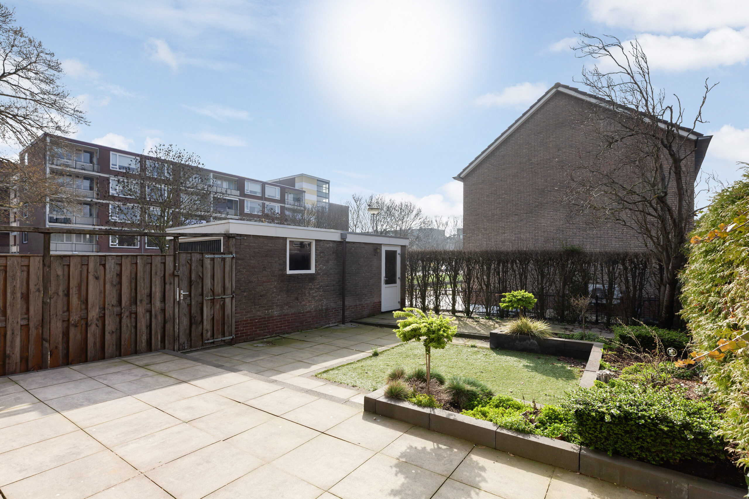 De woning staat op een perceel van 255 m² met de achtertuin gesitueerd op het zonnige zuiden. De tuin is aangelegd met een terras, gazon en diverse beplantingen in de plantenborders. Over de volle breedte van de woning is er een elektrisch zonnescherm. Tevens staat er een grote garage van circa 6.06 x 2.81m.