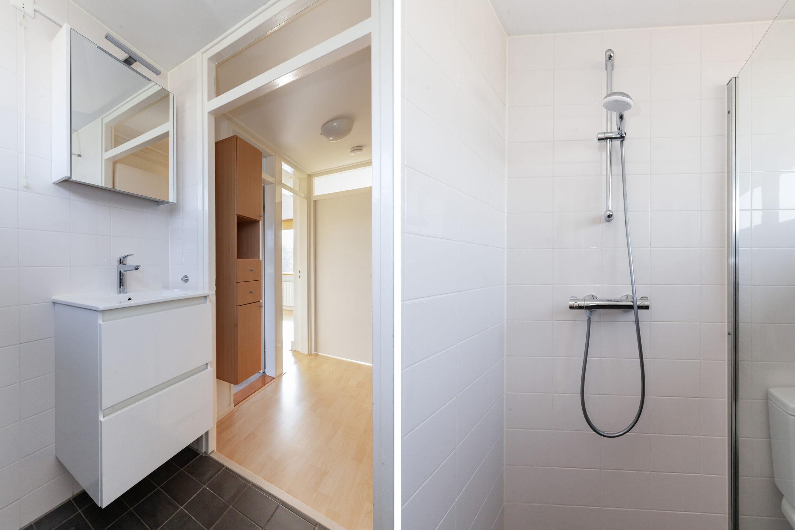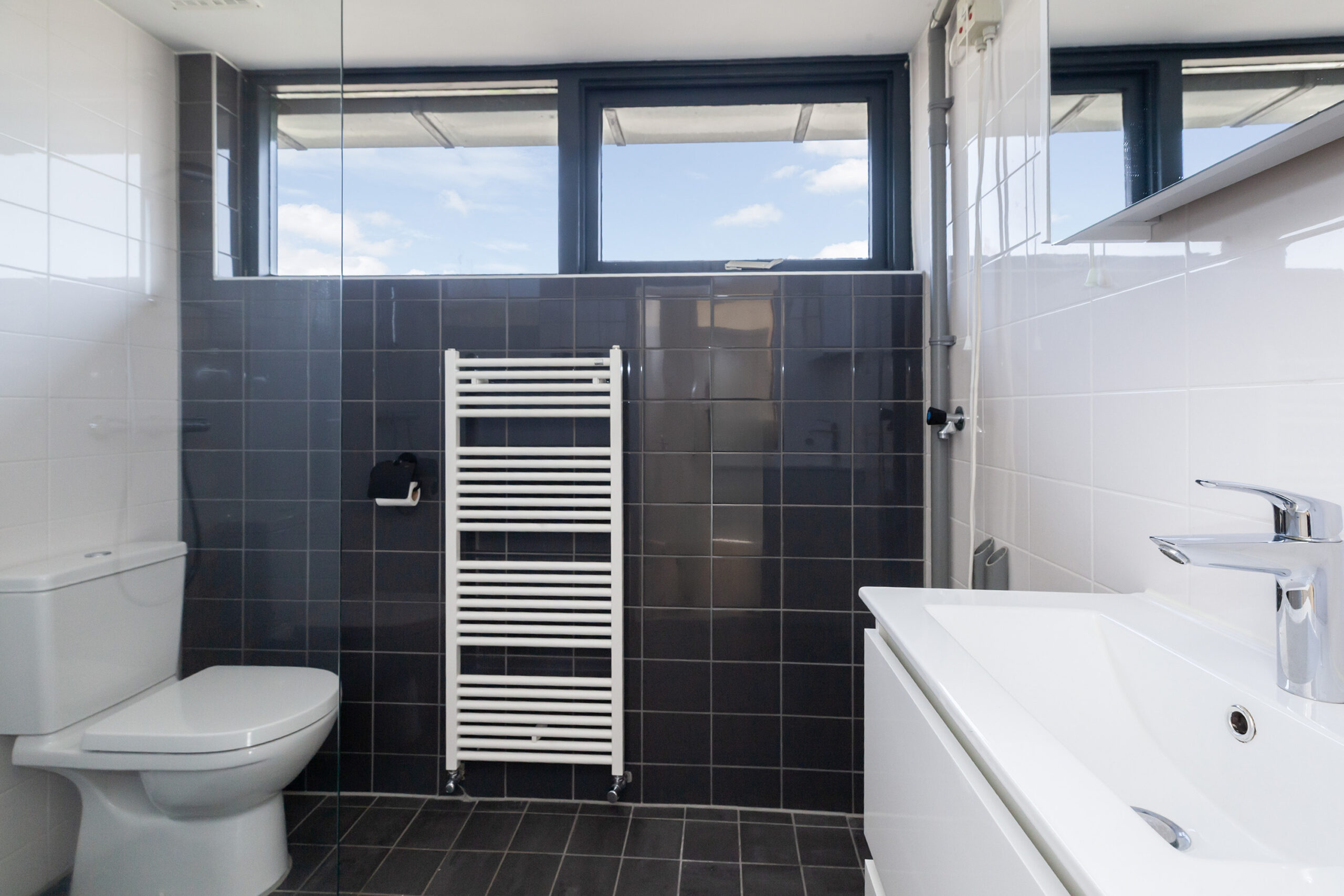 Aan de voorzijde is de badkamer te vinden. Deze is voorzien van een inloopdouche, wastafelmeubel, toilet en designradiator. Tevens heeft u hier de aansluitingen voor uw wasapparatuur.