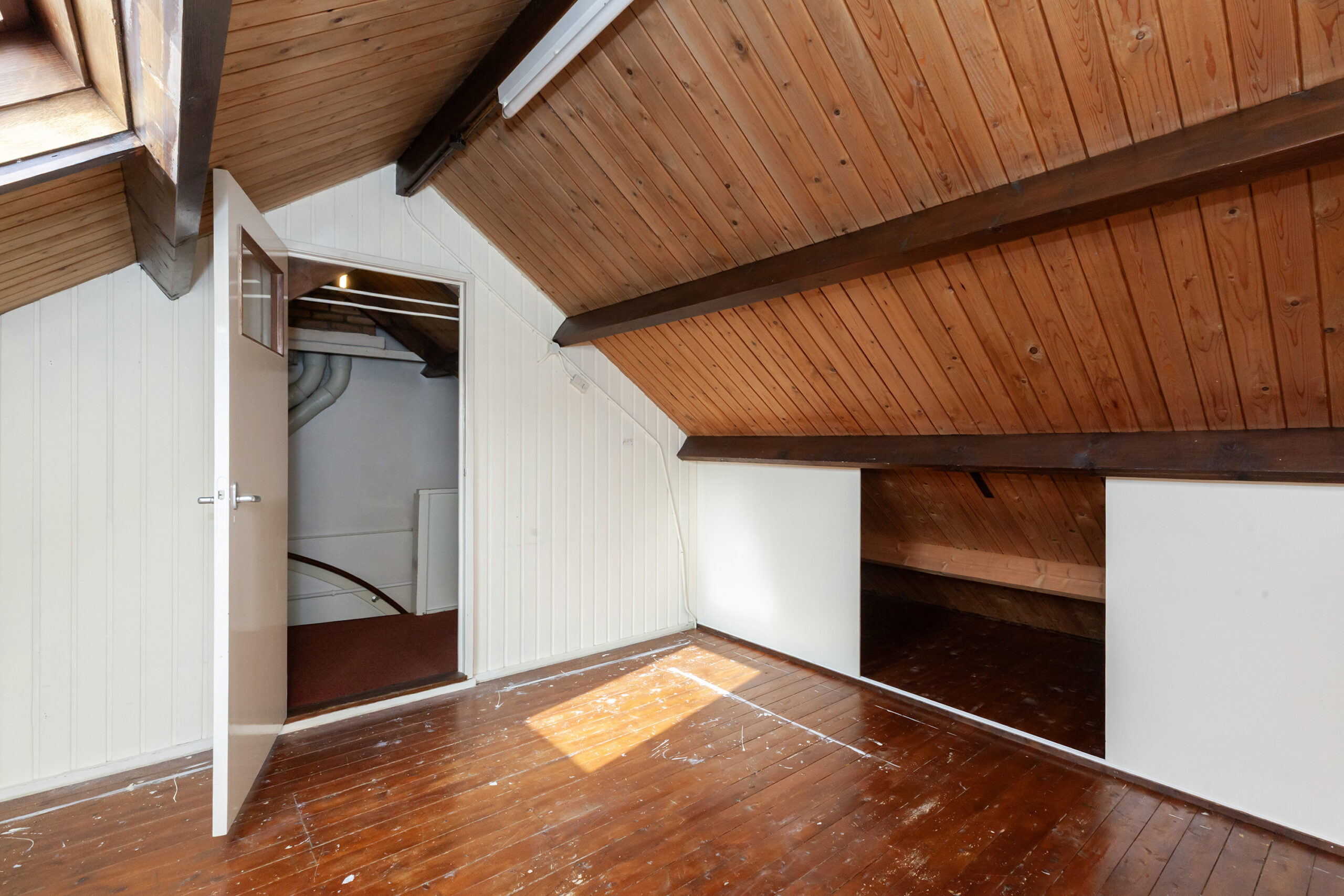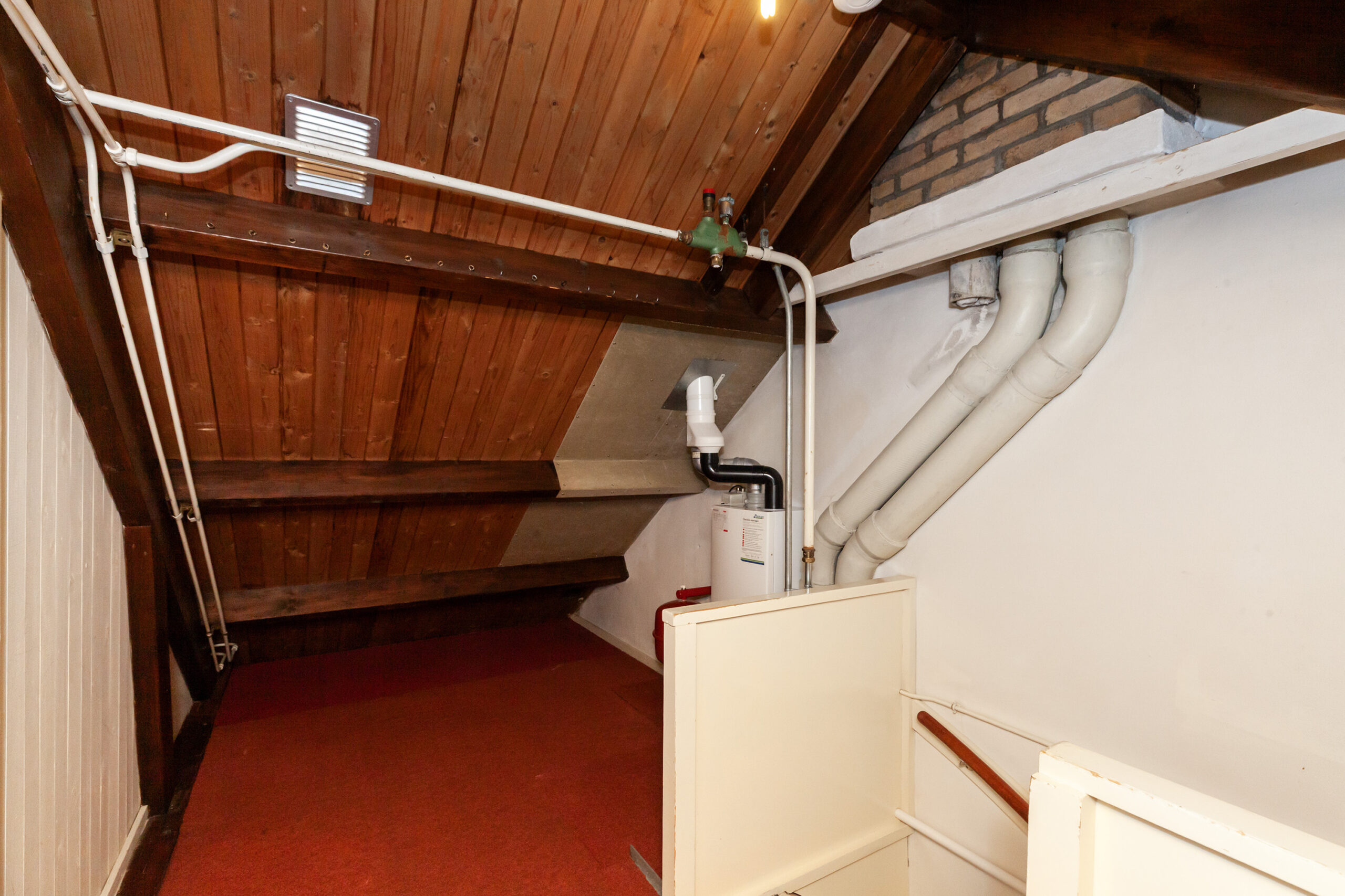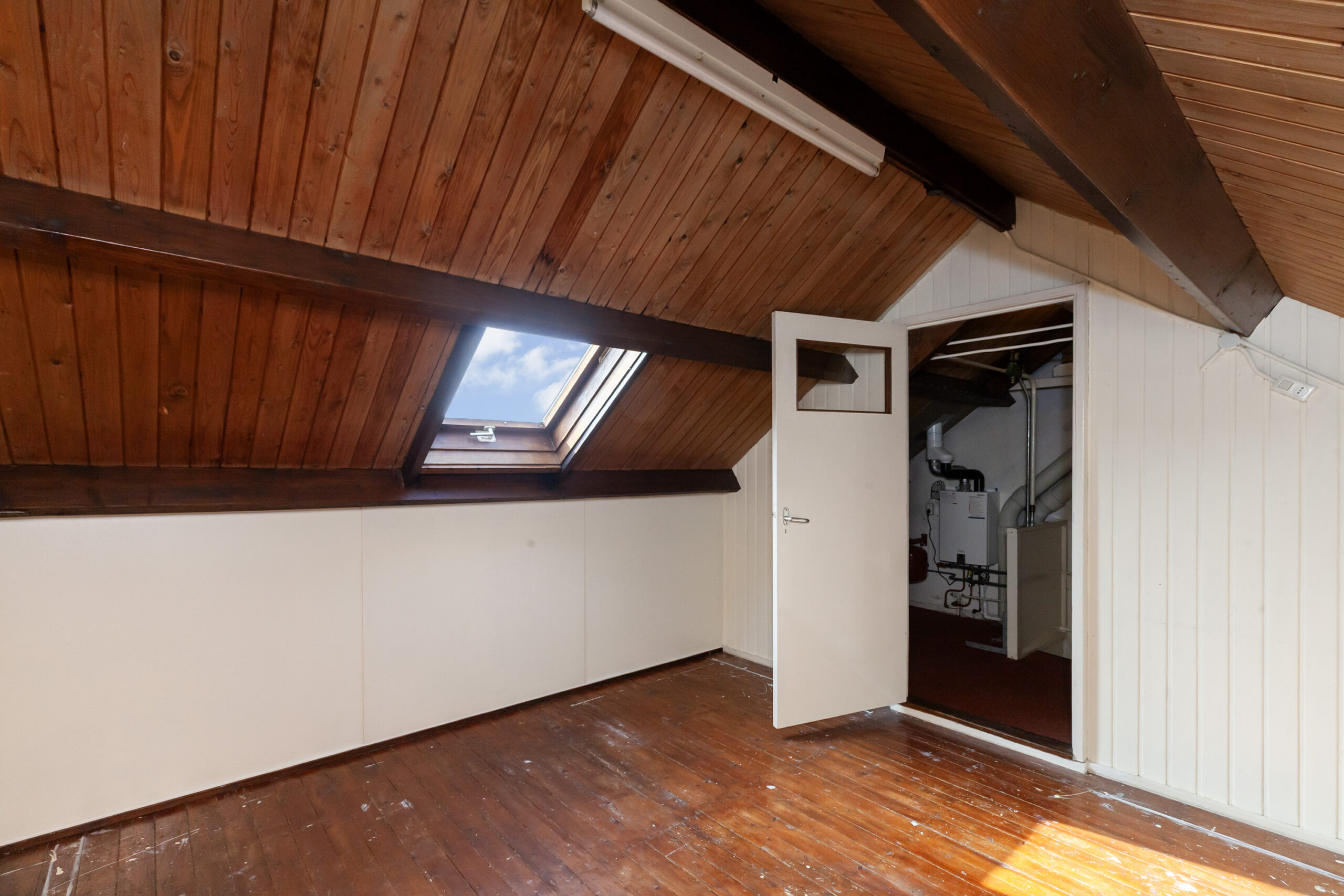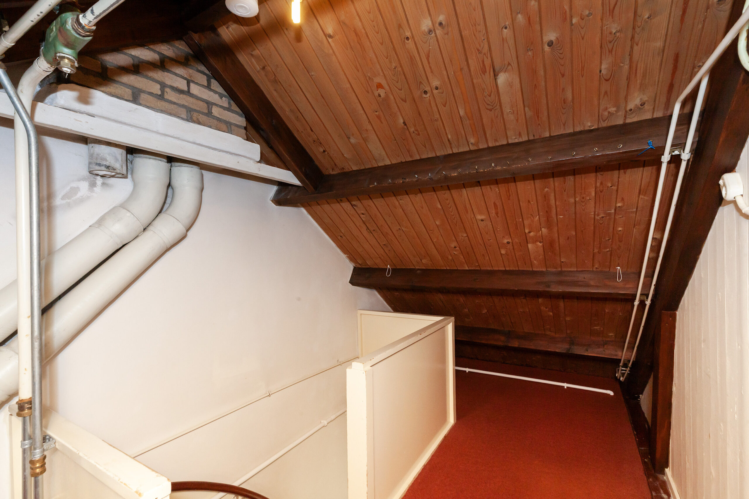 Mede door de hoge nok gaat er nog veel ruimte schuil op deze verdieping. Op de overloop is de opstelling van de C.V.-ketel.