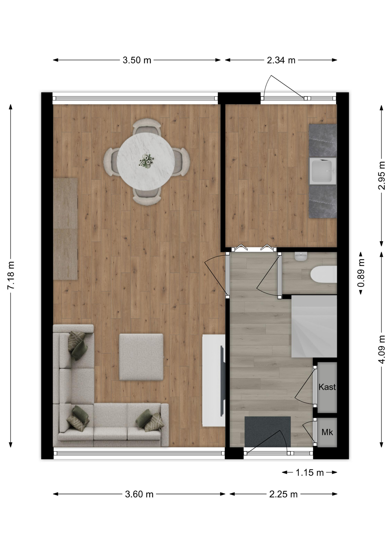 Maatvoering: Circa 7.18 x 3.60/3.50m