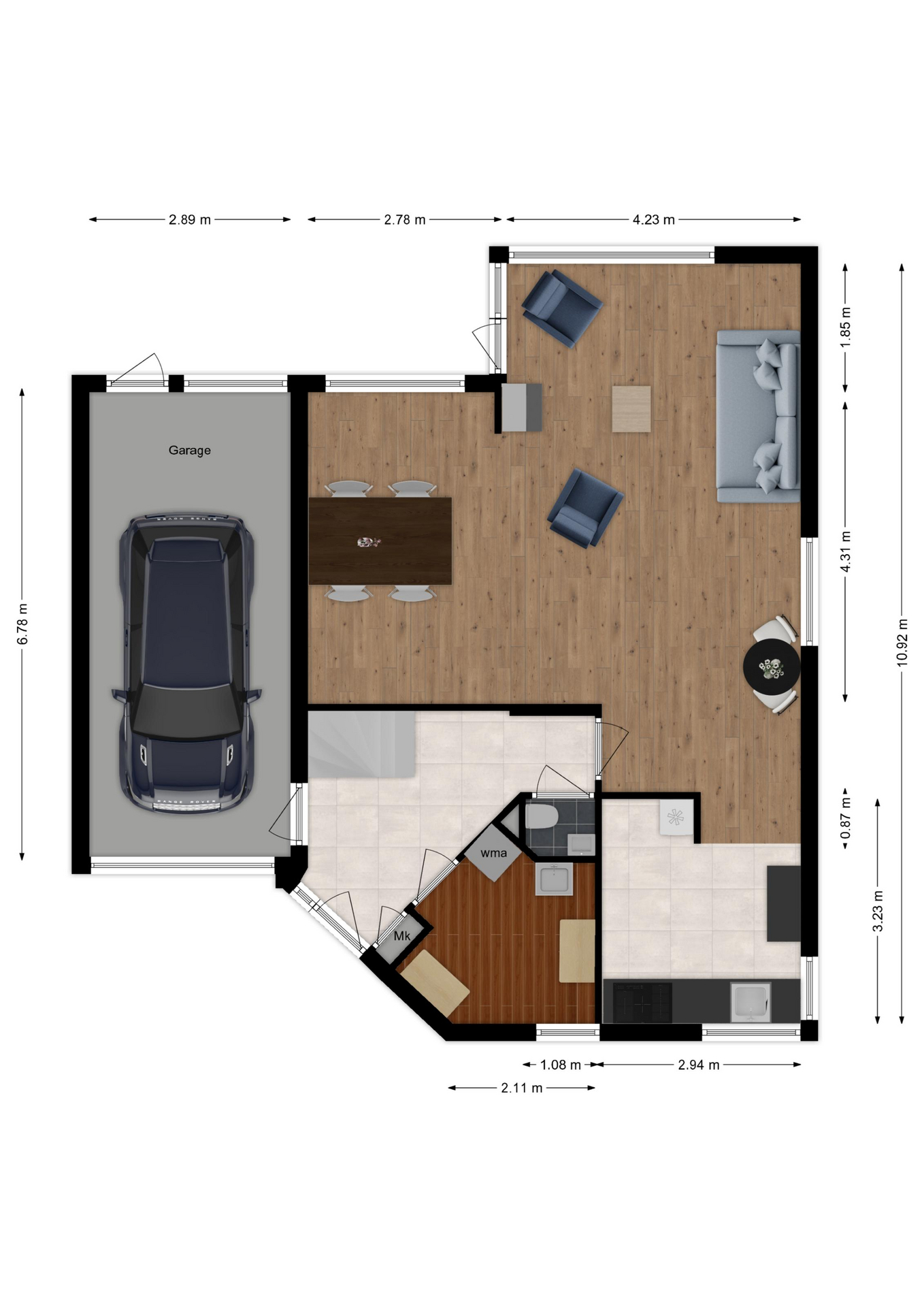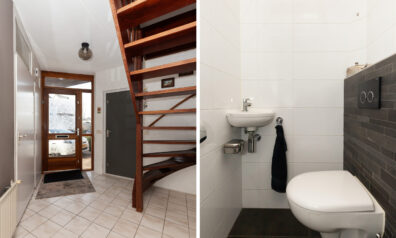 In deze ruime ontvangstruimte heeft u de meterkast, trap naar de eerste verdieping en toegang tot de garage, bijkeuken, toiletruimte en uiteindelijk ook de woonkamer.