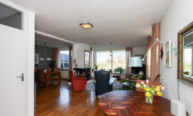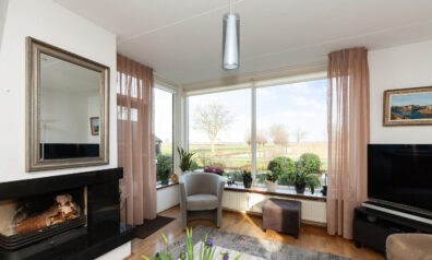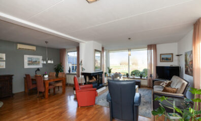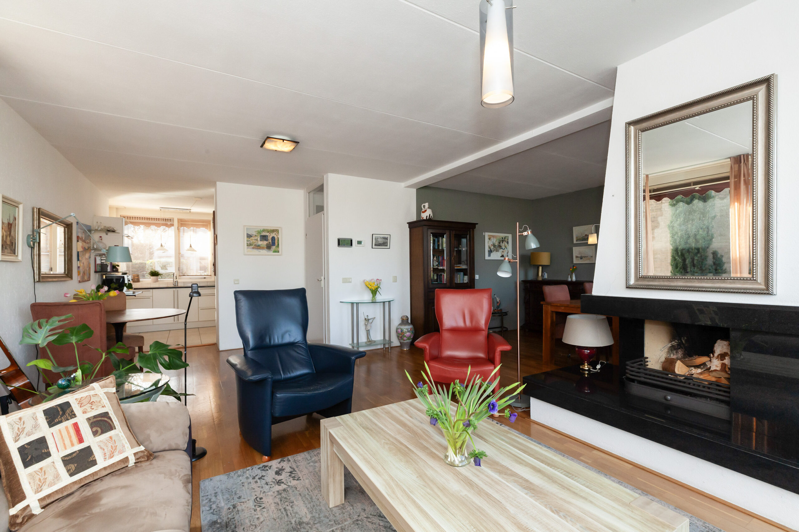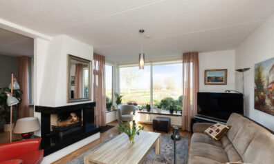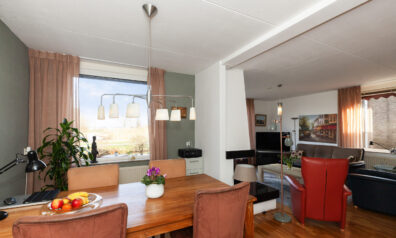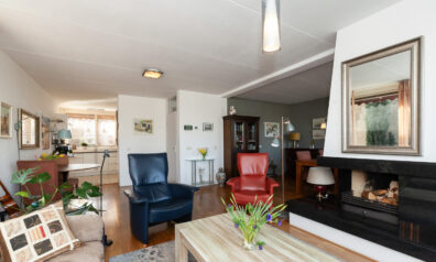 Zodra u de woonkamer binnenkomt trekt uw oog zich naar de raampartijen, wat een heerlijk uitzicht! Daarbij komt er prettig lichtinval binnenshuis. Centraal staat de haard midden in de kamer waar u veel plezier van zult hebben in de koude wintermaanden. Verder is er ook een airco welke juist voor verkoeling zorgt in de warme zomermaanden. Door de ruime opstelling van de kamer kunt u gemakkelijk een zit- en eethoek creëren. Via de buitendeur kunt direct naar de tuin en aan de voorzijde staat de keuken in open verbinding.