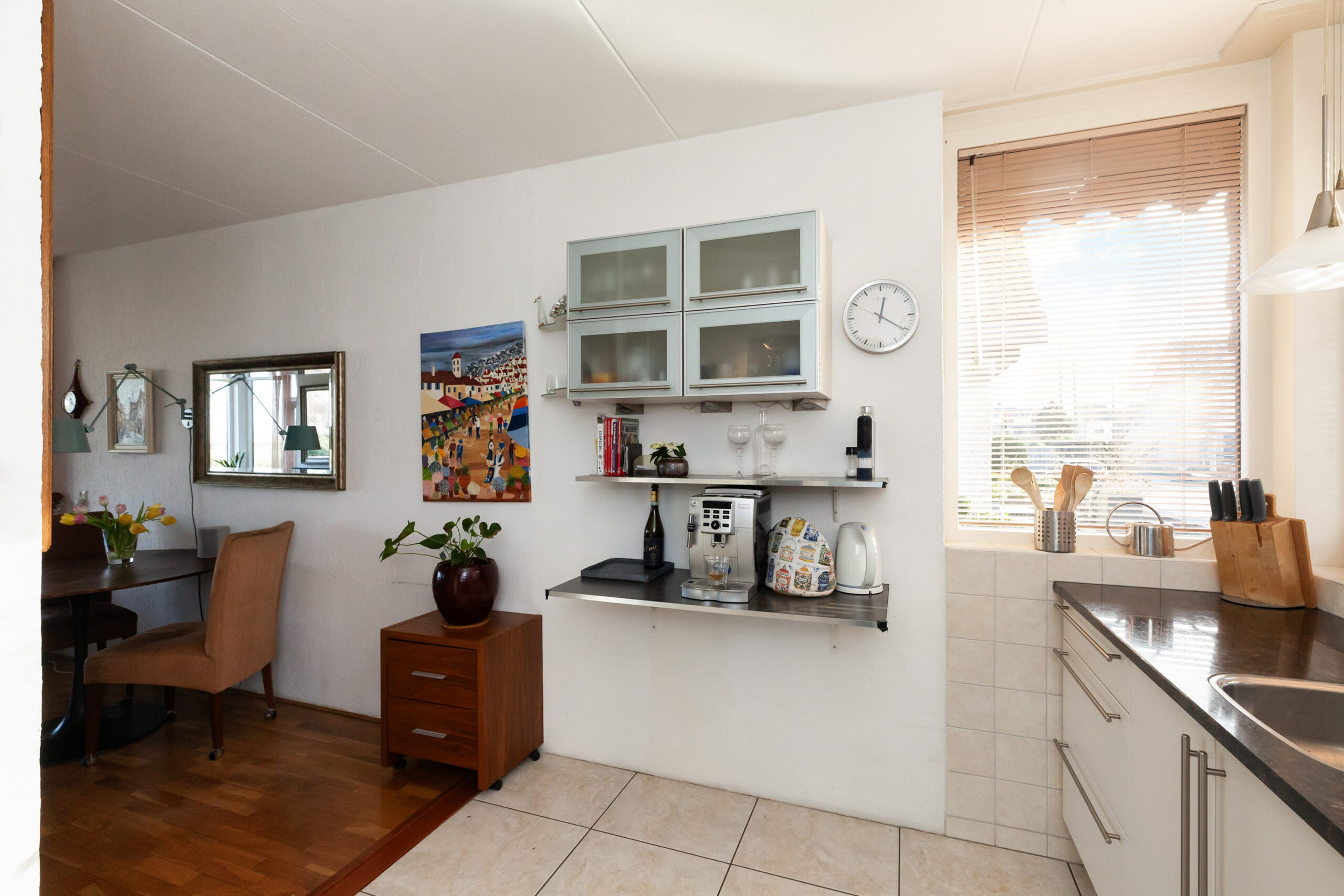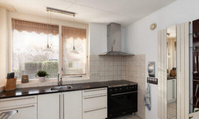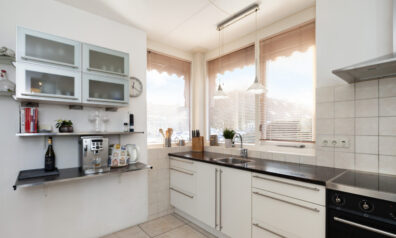 Aan de voorzijde is de keuken gesitueerd. Hier kunt u naar hartenlust kokkerellen terwijl u leuk weg kijkt over de voorgelegen straat. Betreft het inbouwapparatuur heeft u de beschikking over een inductiekookplaat, afzuigkap, oven en er is een magnetron. Verder is er ook een close-in boiler voor snel warm water.