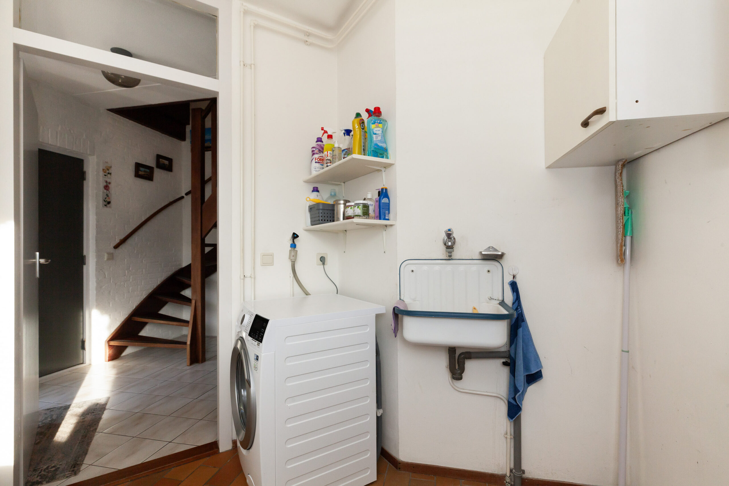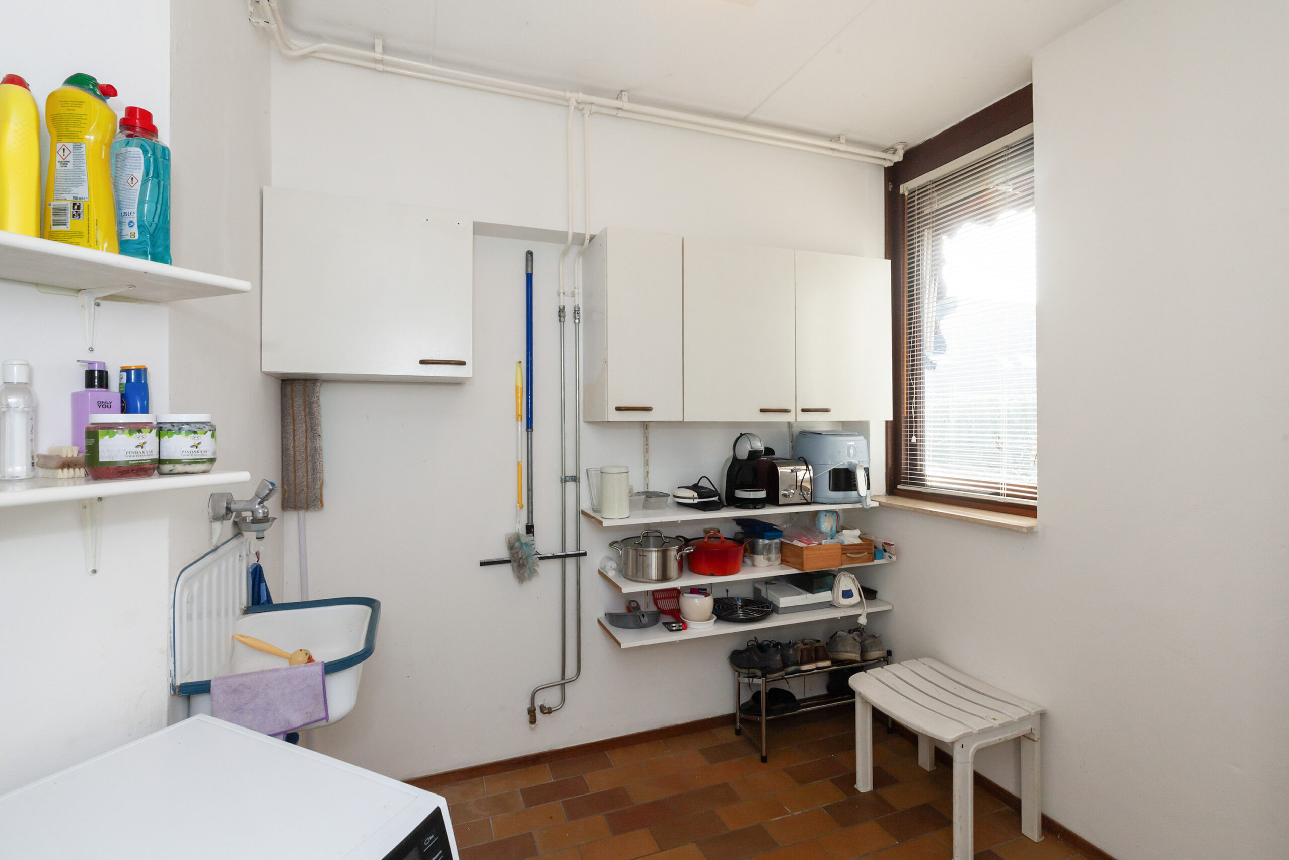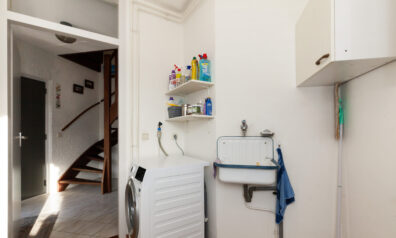 Vanuit de hal heeft u toegang tot deze bijkeuken. Eveneens een praktische ruimte om uw wasapparatuur te plaatsen en bijvoorbeeld een vriezer. Daarnaast geeft het ook opbergmogelijkheden en er is een spoelbak.