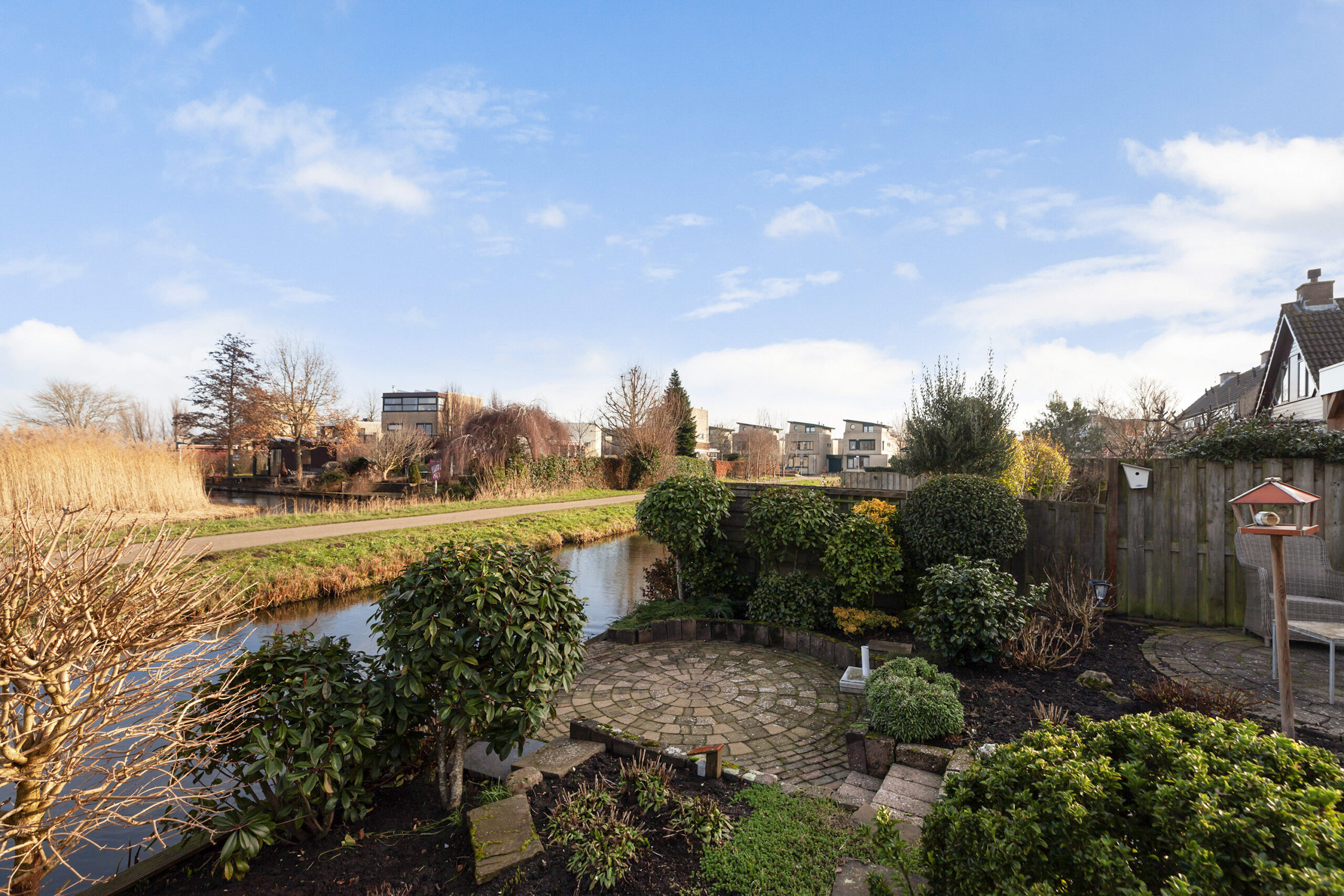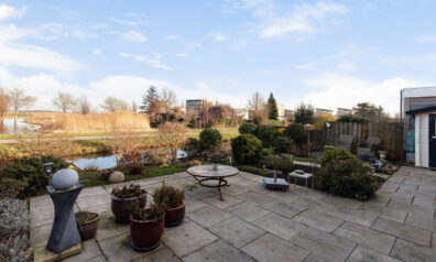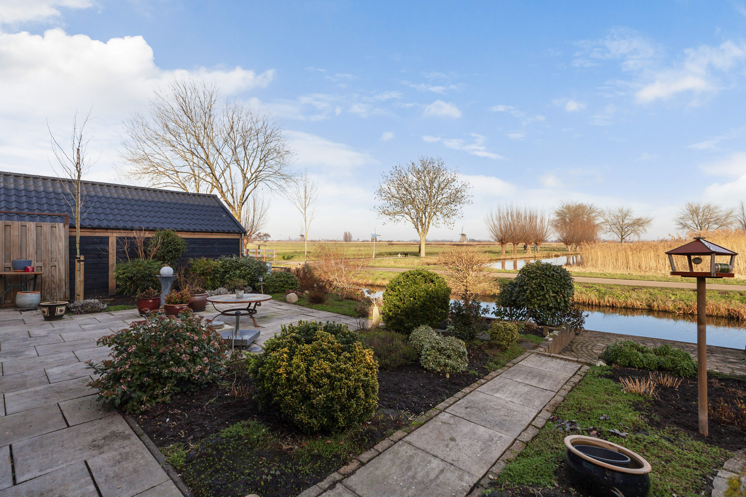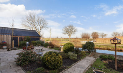 Achter de tuin ligt een watertje en het zogeheten ‘Buitenpad’ waar gewandeld kan worden door de frisgroene polder. In de tuin zelf staat een houten berging van circa 2.76 x 1.65m.