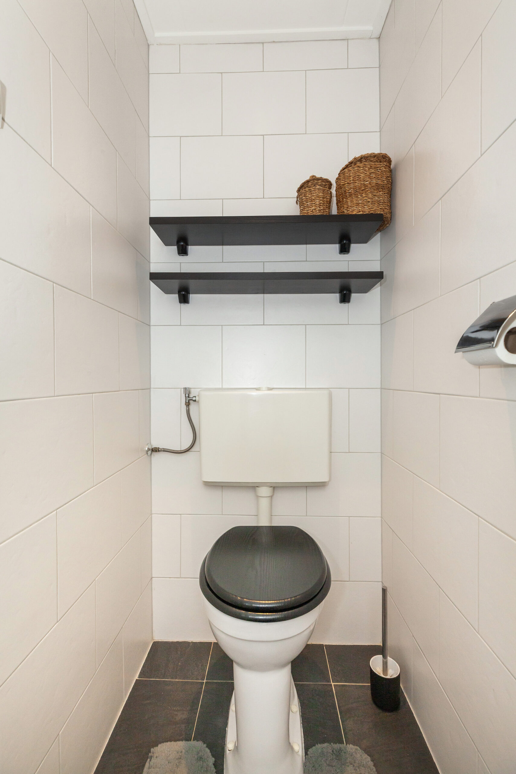 Nette sanitaire ruimte voorzien van een vrijstaand toilet.