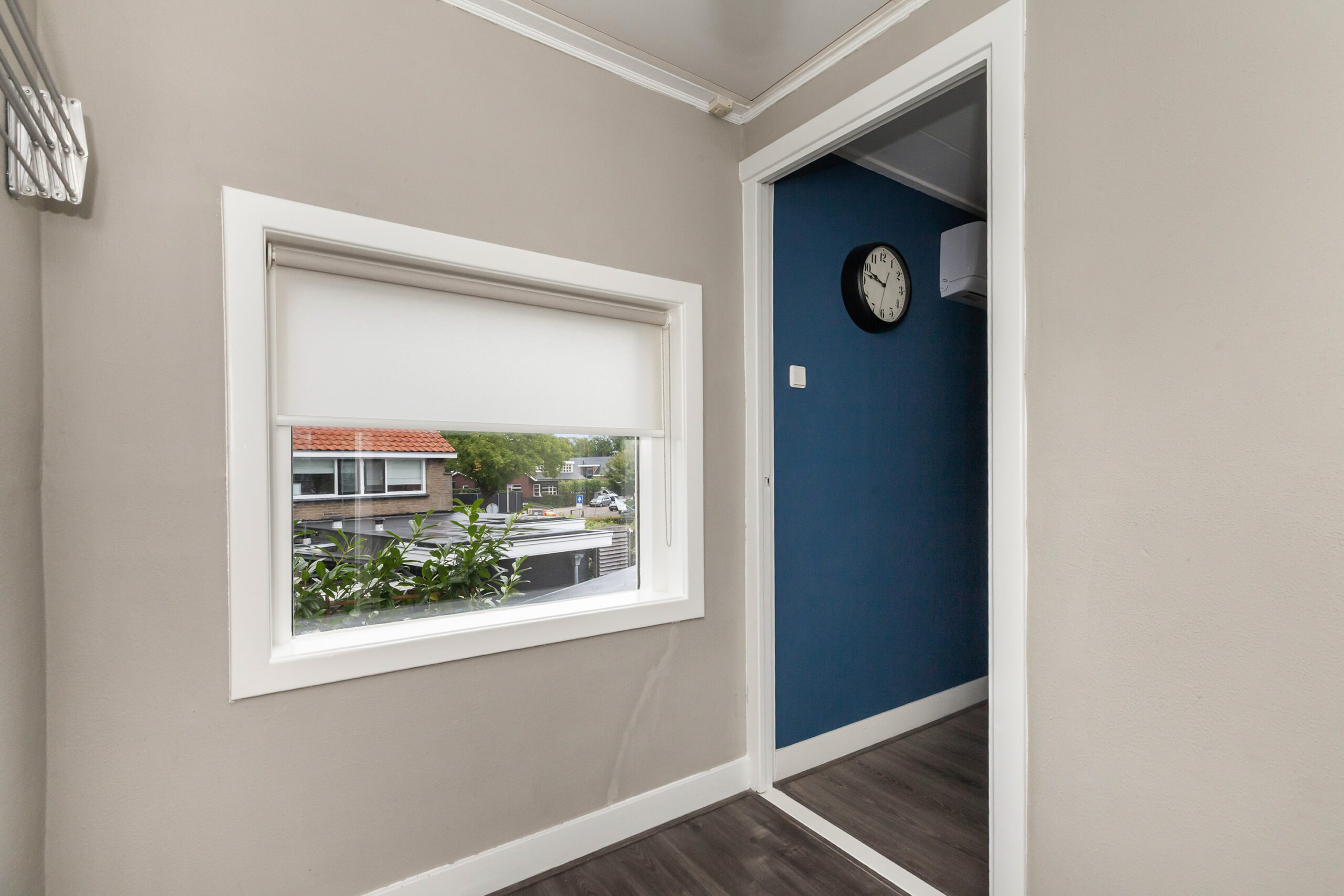 Neem je de trap vanuit de hal, dan kom je op de overloop van de eerste verdieping. Vanaf hier is er toegang tot de drie slaapkamers en de vlizotrap naar de ruime zolder.