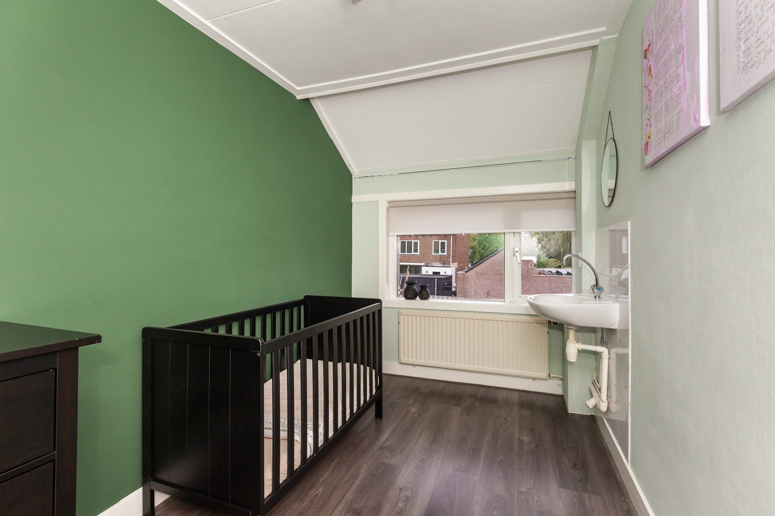 De tweede slaapkamer tref je aan de achterzijde en er is beschikking over een wastafel.