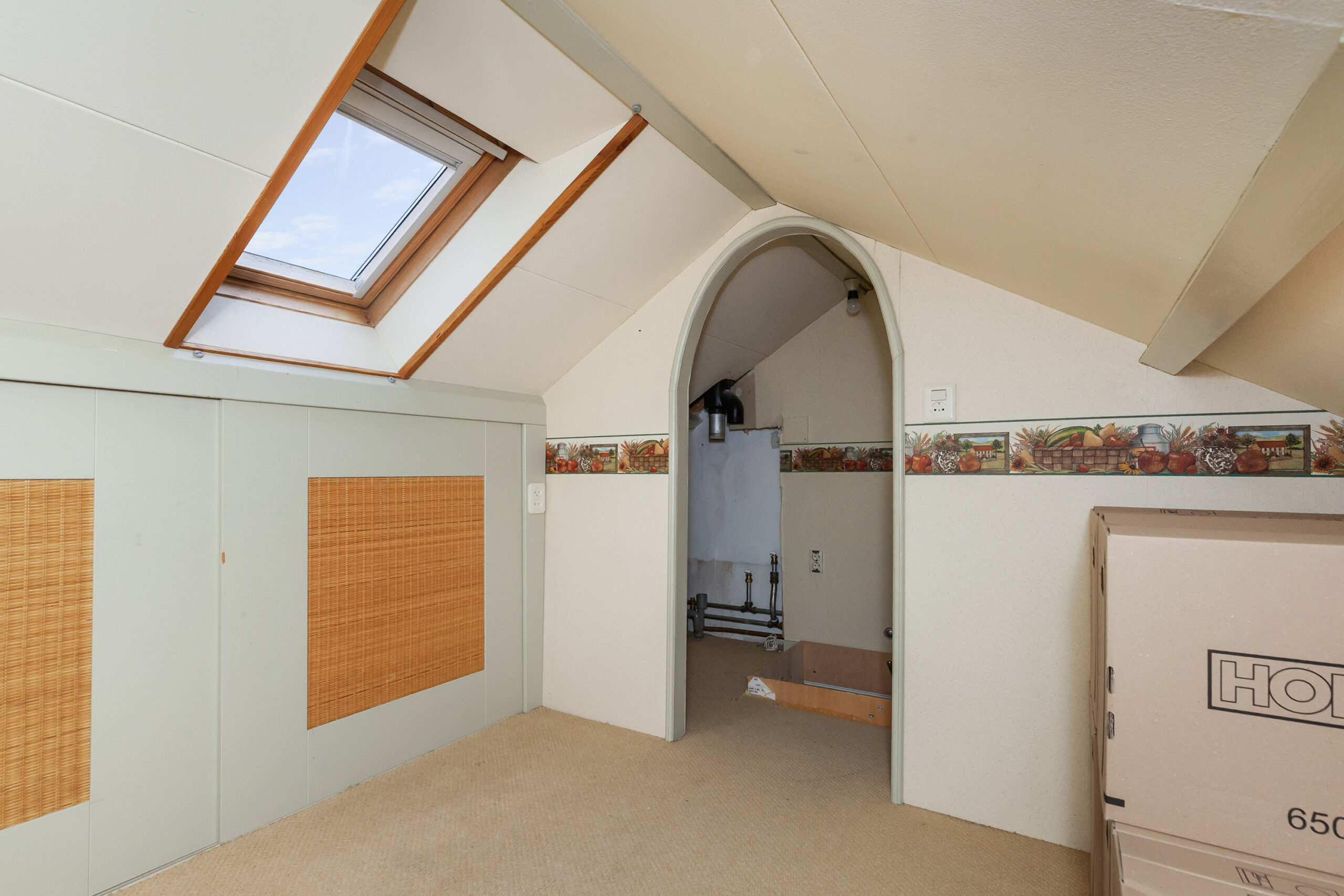 De bergzolder is over de volle breedte van de woning en voorzien van een raam en knieschotten. Allerlei spullen kan hier gemakkelijk worden opgeborgen. De nokhoogte is circa 1.65m.