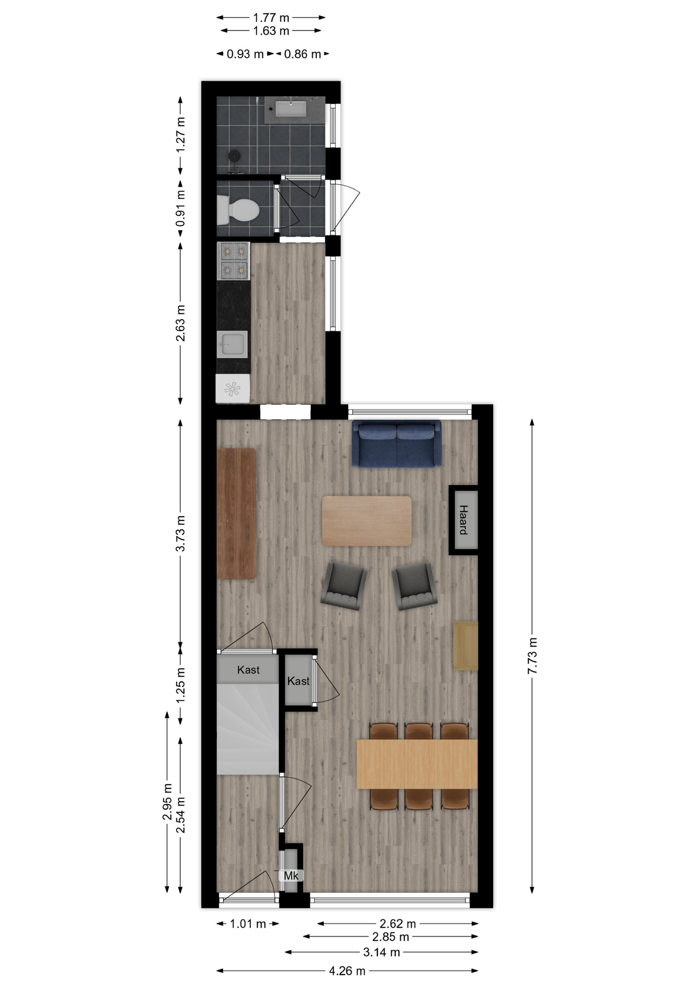Maatvoering: circa 4.23 x 2.96m