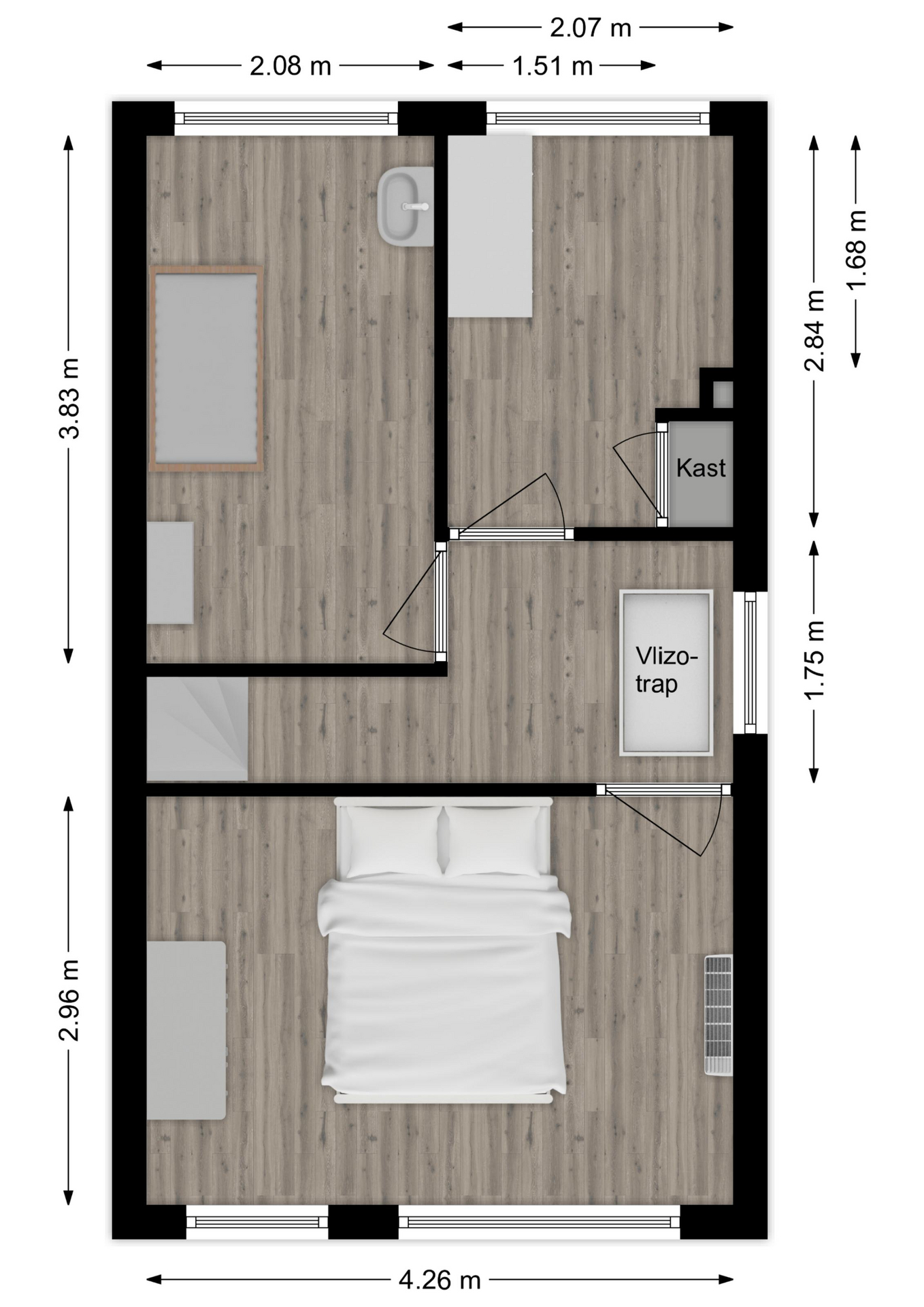 Maatvoering: Circa 3.83 x 2.08m