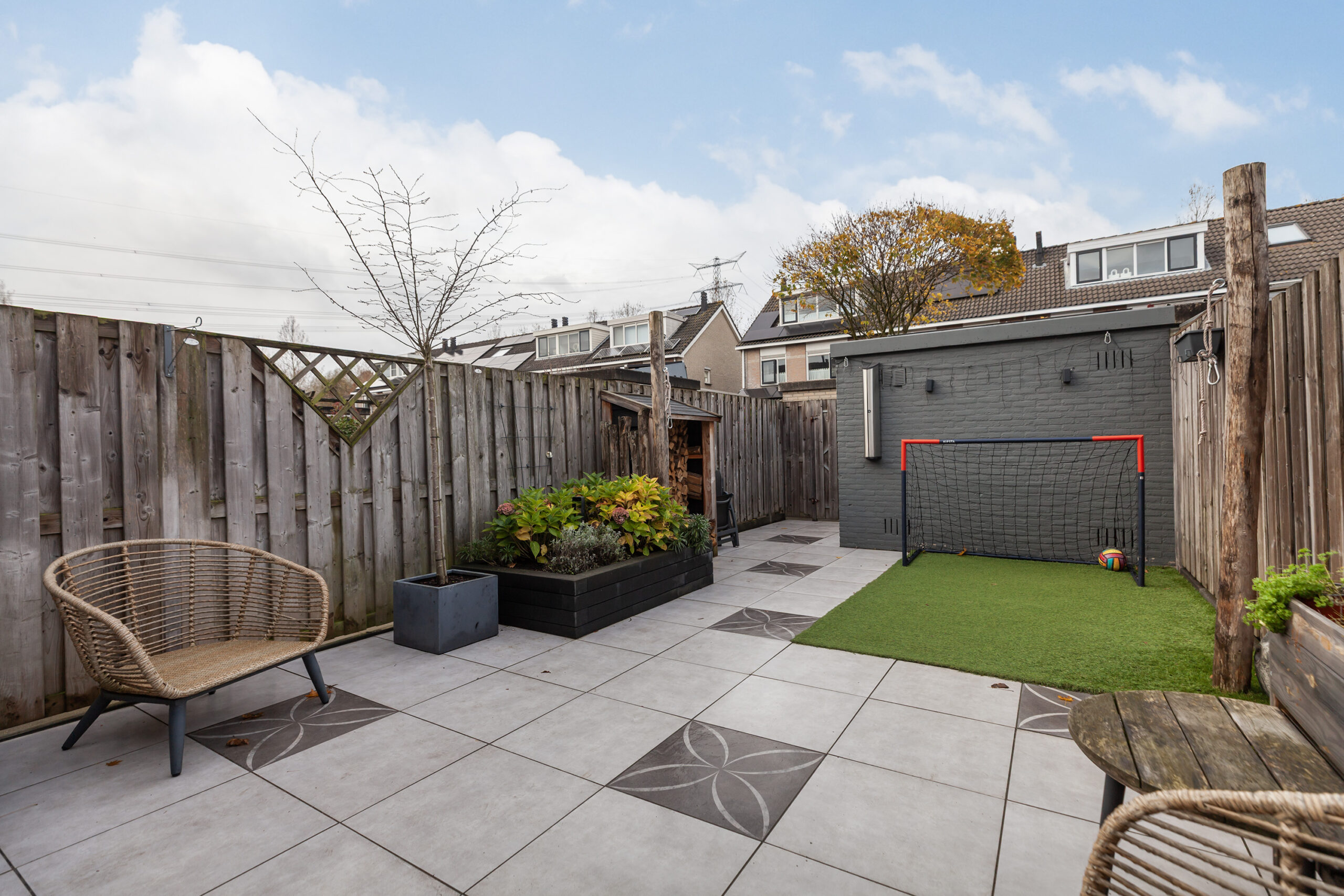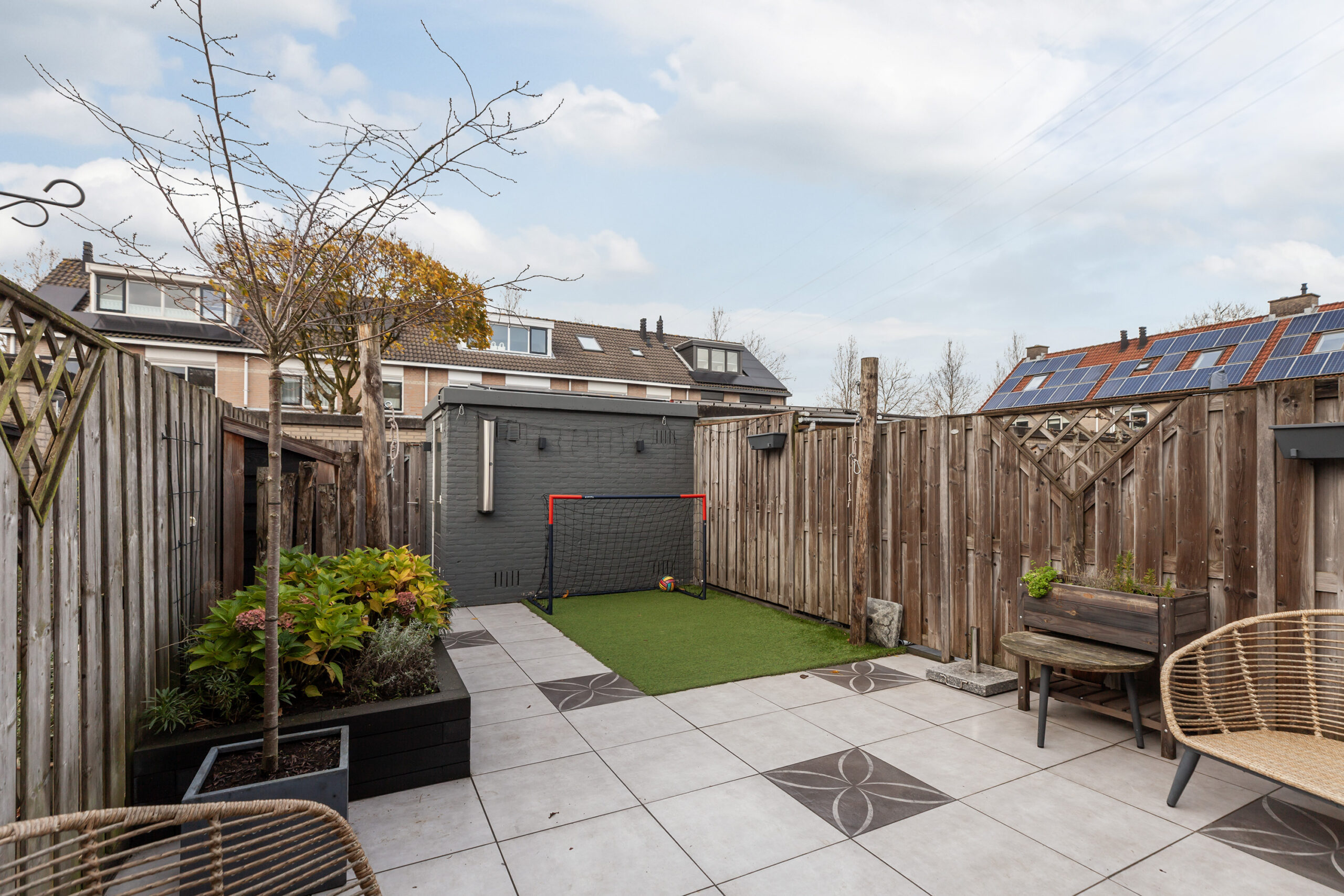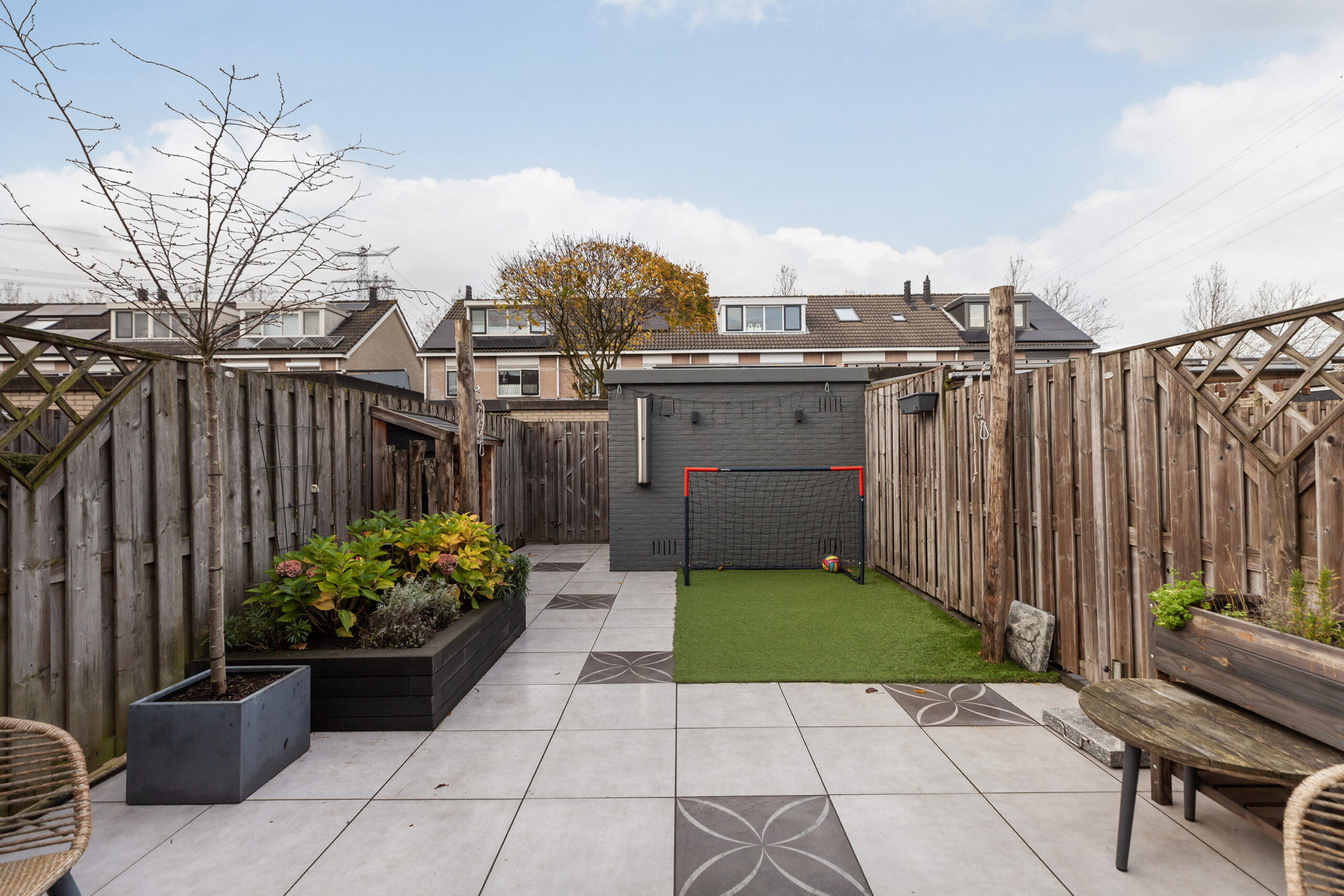 De woning is gelegen op een perceel van 124 m² met onderhoudsvriendelijke tuinen. De voortuin nodigt u uit om plaats te nemen op het bankje terwijl u geniet van het ochtendzonnetje. Terwijl de achtertuin strak aangelegd is met sierlijke tegels en een gazon. Achterin de tuin staat de stenen berging van circa 2.98 x 2.22m groot. Via de poort kunt u achterom komen. Op het achtergelegen pad is erfdienstbaarheid gevestigd met omliggende buren.