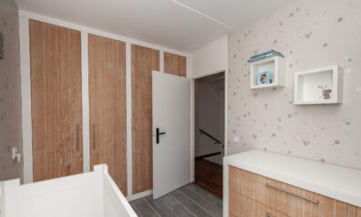 Aan de voorzijde is de tweede slaapkamer van deze verdieping. Ook deze is voorzien van op maat gemaakte kasten, ideaal!