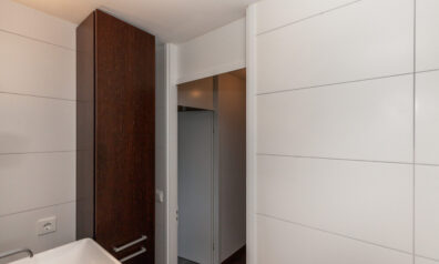 De overloop geeft toegang tot de twee slaapkamers en aan de voorzijde is een grote inloopberging waar u ook de C.V.-ketel treft. Verder zijn de aansluitingen voor uw wasmachine en droger op de overloop. Achter de wasmachine is een luik naar de berging.