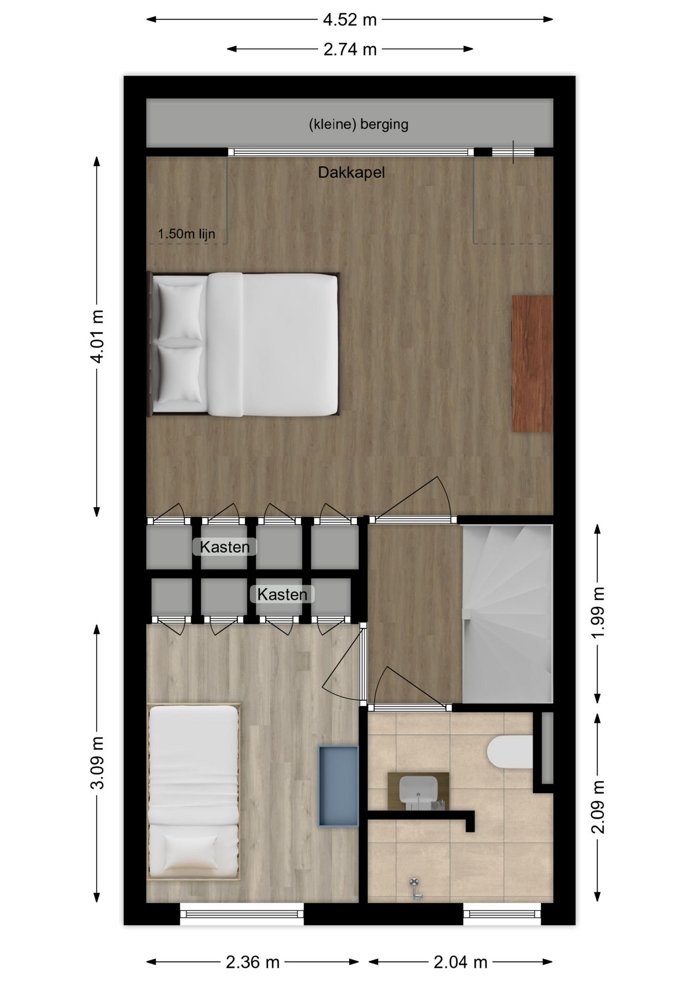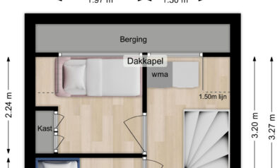 Op de tweede verdieping gaat meer ruimte schuil dan u op het eerste oog verwacht! Aan de voorzijde is een dakkapel, en in 2025 zelfs nog één aan de achterzijde! Daardoor is er veel extra leefruimte gecreëerd. Er is een ruime overloop met twee slaapkamers en een inloopberging.