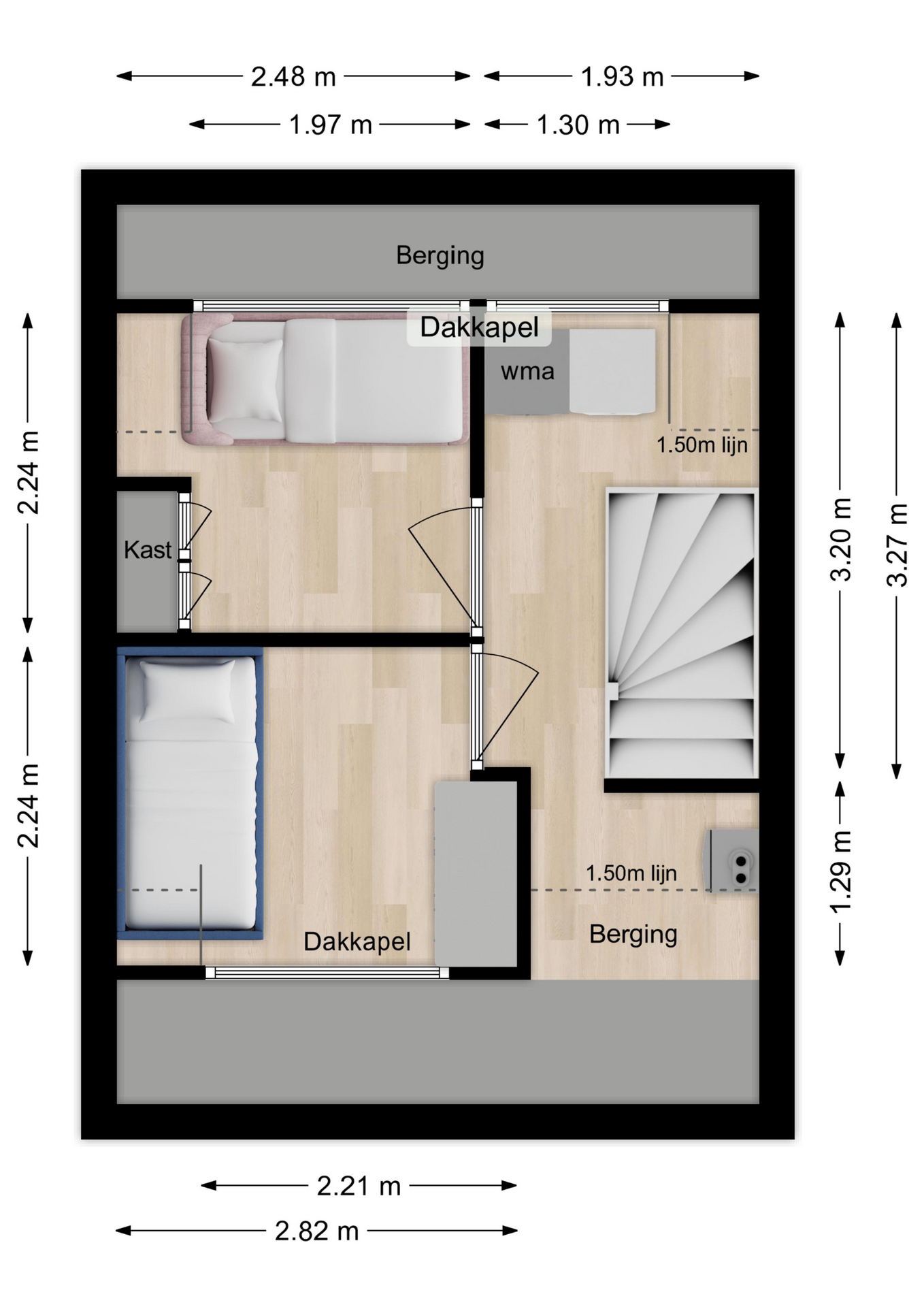 Maatvoering: Circa 2.82/2.48 x 2.24m