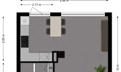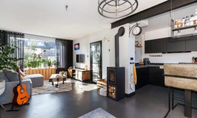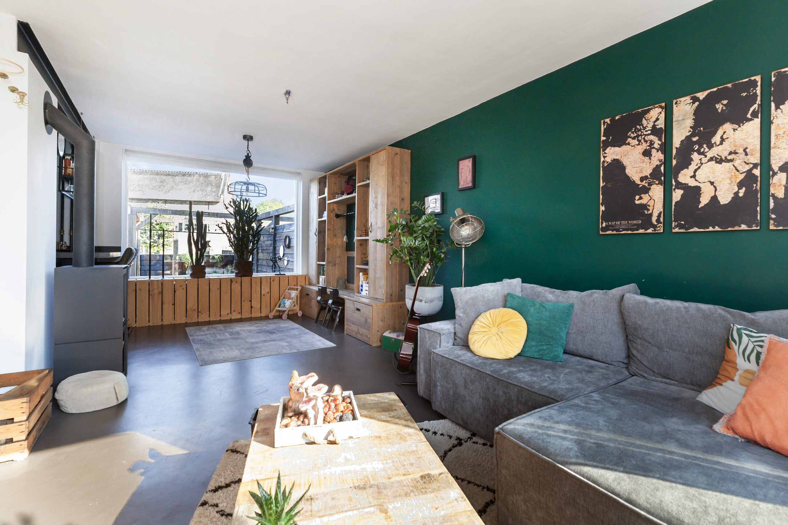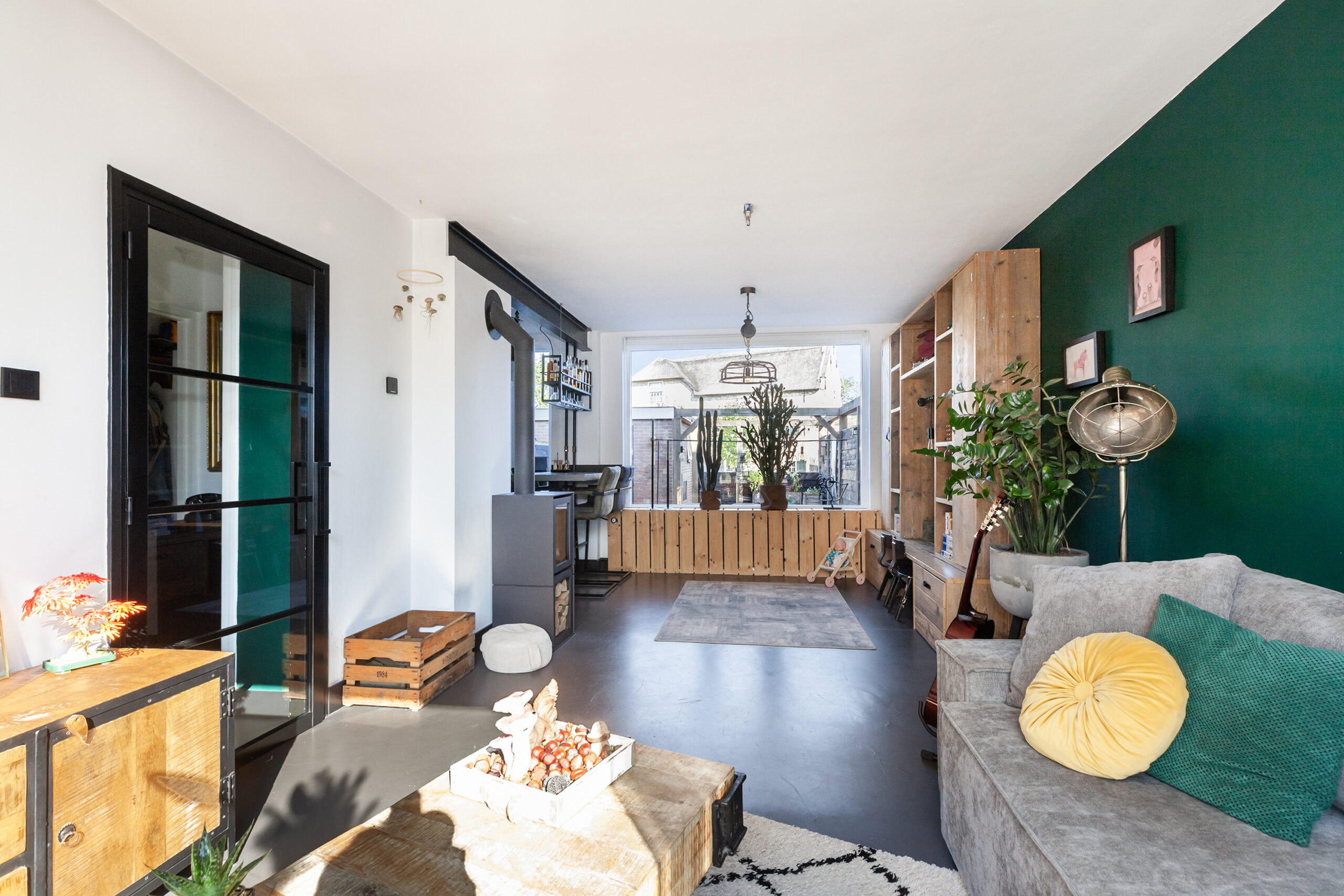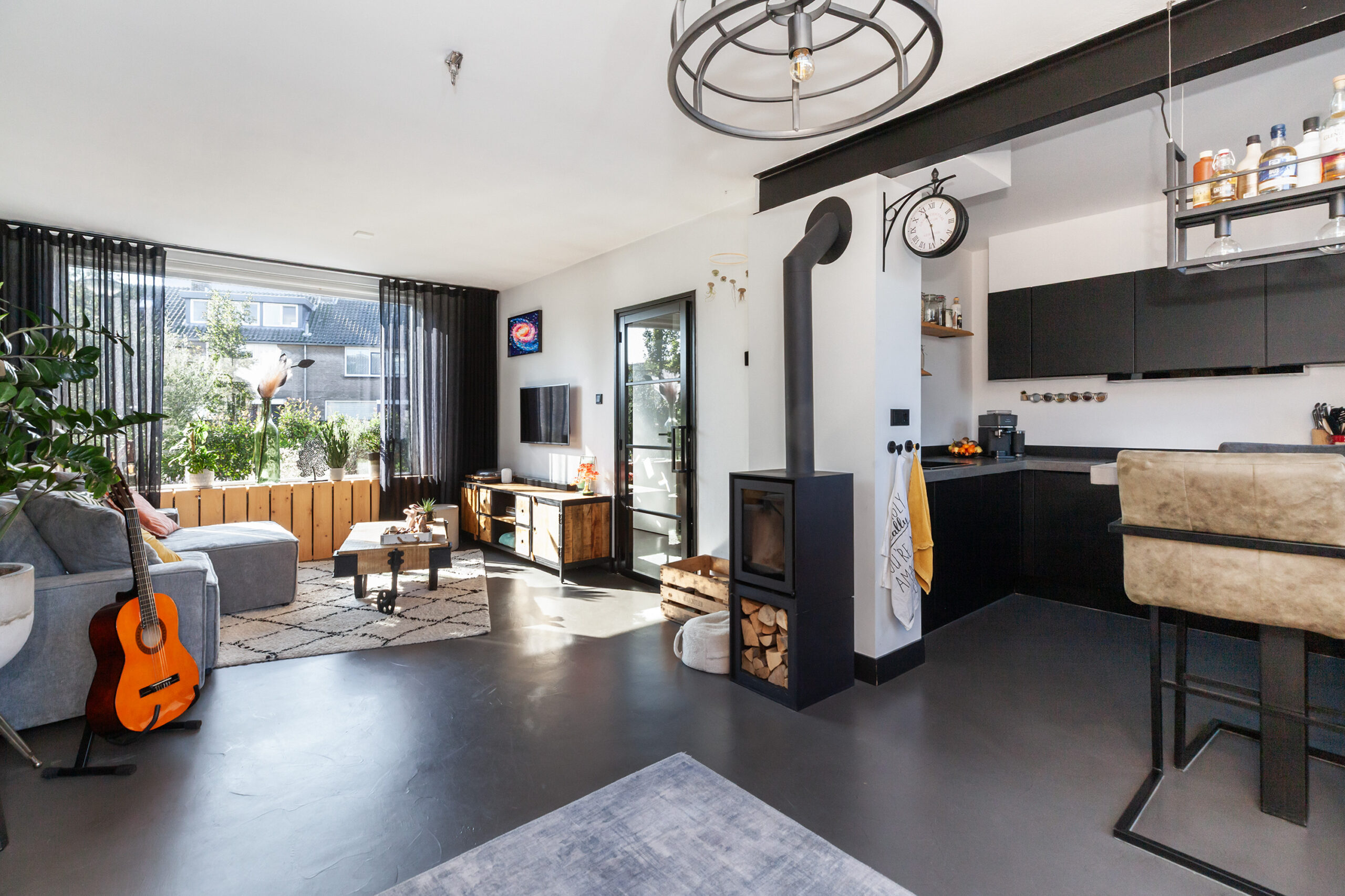 De woonkamer kenmerkt zich door de grote raampartijen aan zowel de voorzijde als de achterzijde. Daarbij is er een heerlijke houtkachel waar u ongetwijfeld veel plezier van zult hebben. Aan de achterzijde vloeit de kamer over in de keuken.