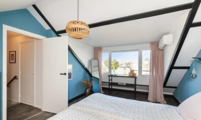 Deze slaapkamer is heerlijk ruim door de grote dakkapel, welke voorzien is van een kunststof kozijn. En het uitzicht zal u hier niet vervelen!