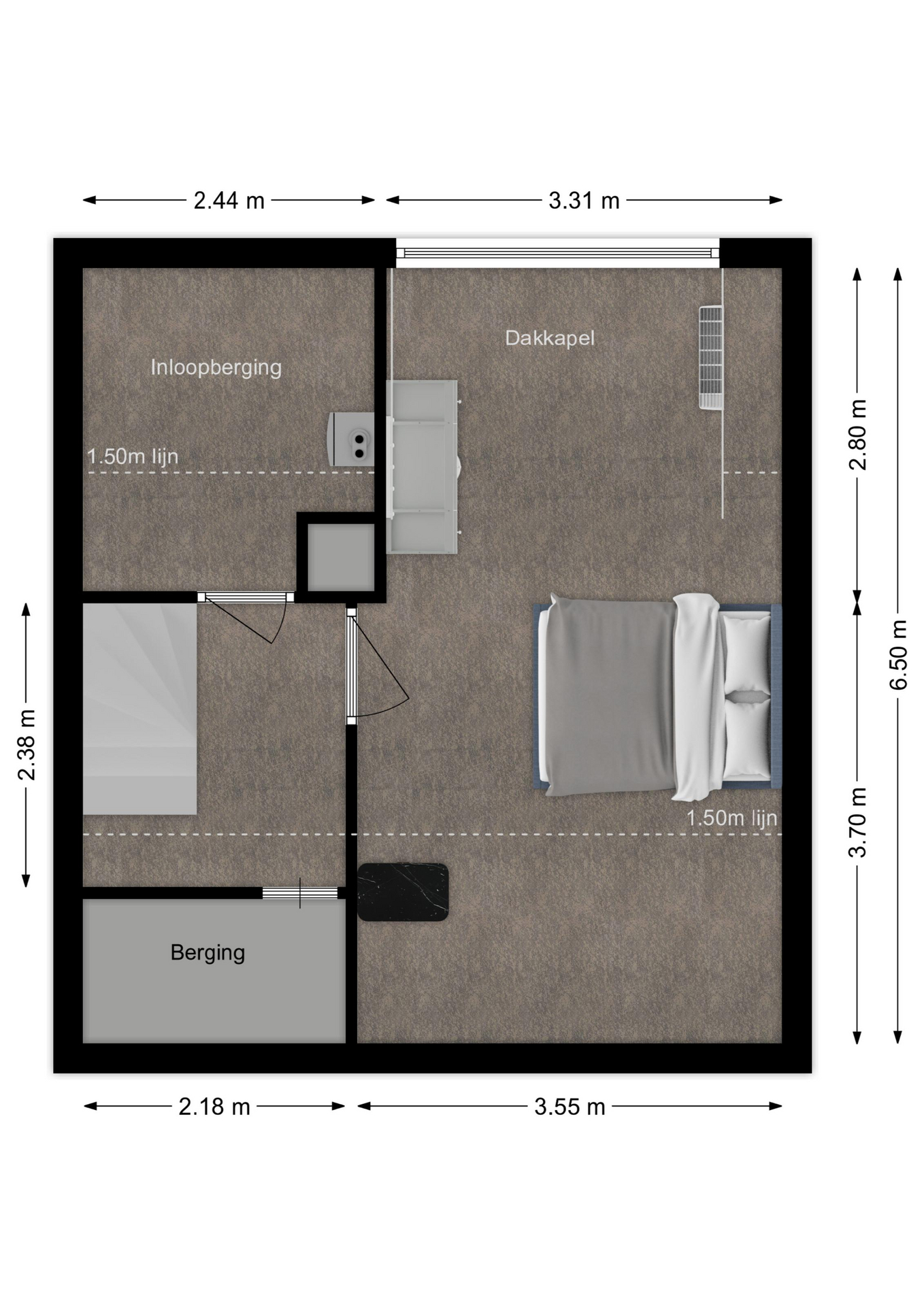 Maatvoering: Circa 6.50 x 3.55/3.31m