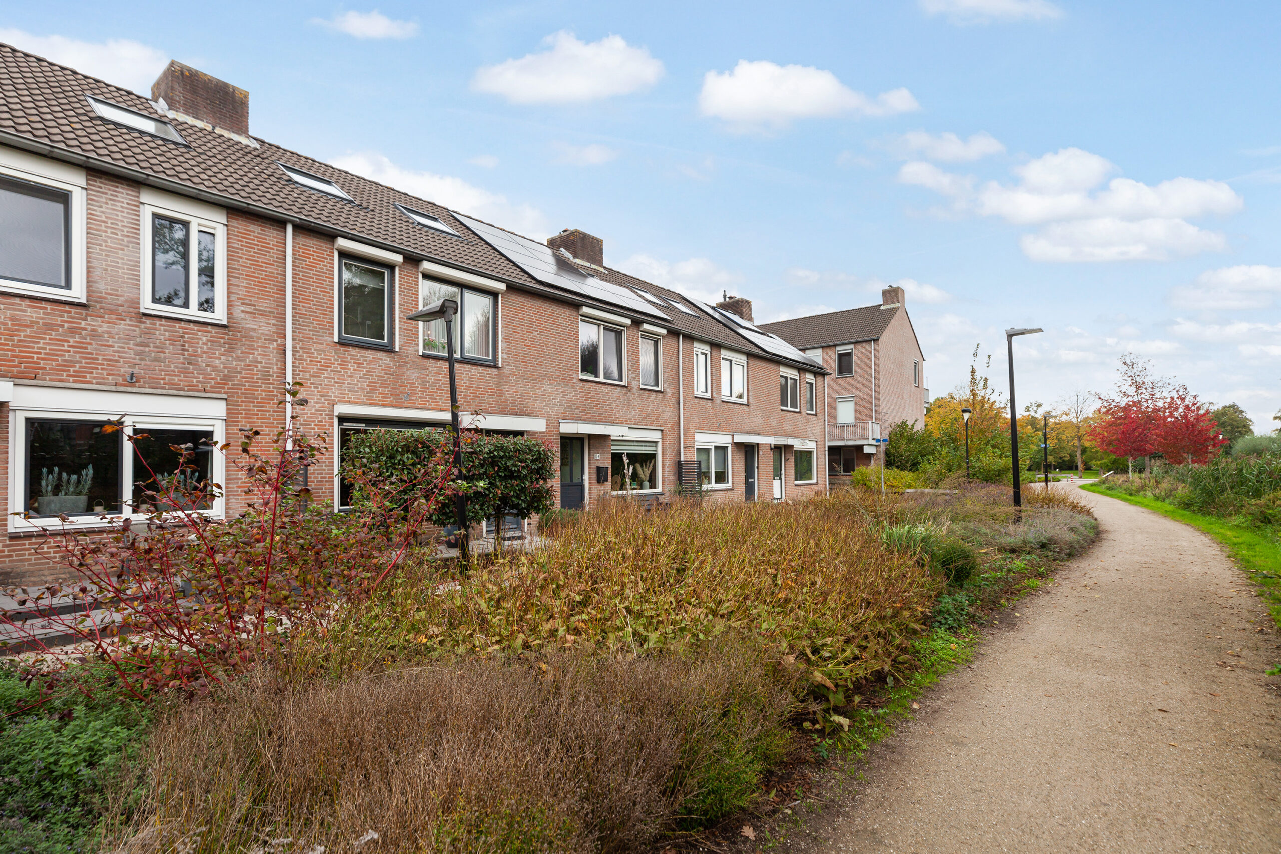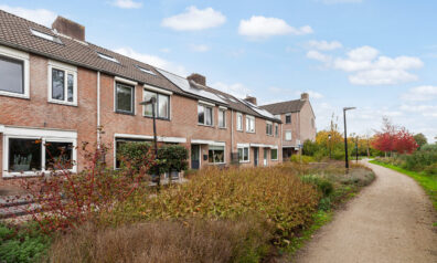 Zoals gezegd woont u aan de voorzijde vrij en over het voetpad komen alleen de wandelaars. Voor de woning ligt een nette tuin met een tweetal bomen waardoor u beschutting heeft.